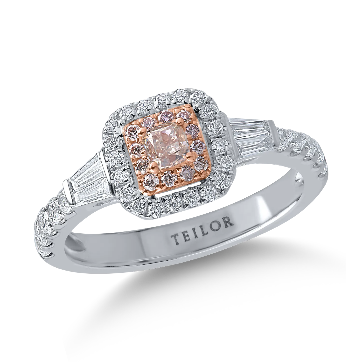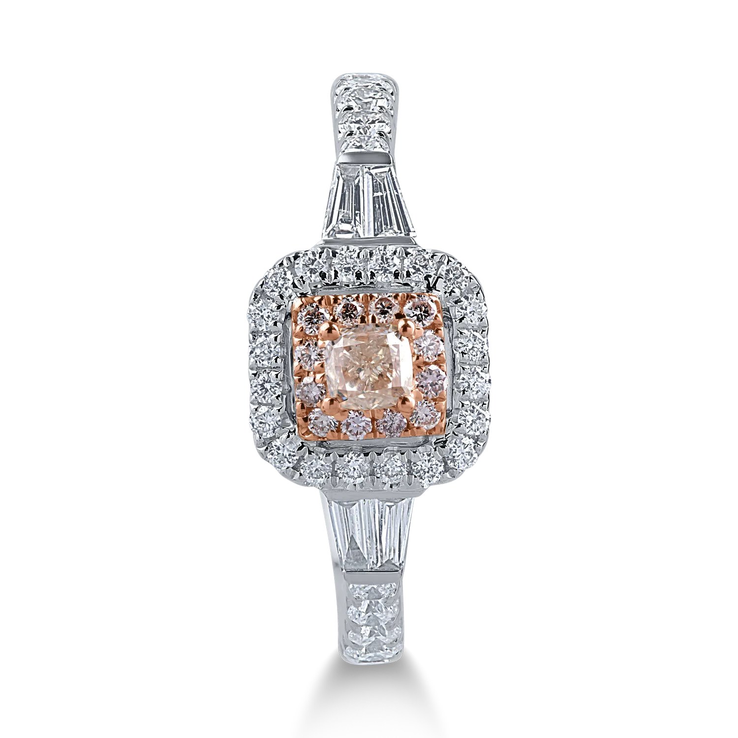 Inel din aur alb-roz cu diamante transparente baguette si rotunde de 0.62ct si diamante roz cushion si rotunde de 0.29ct