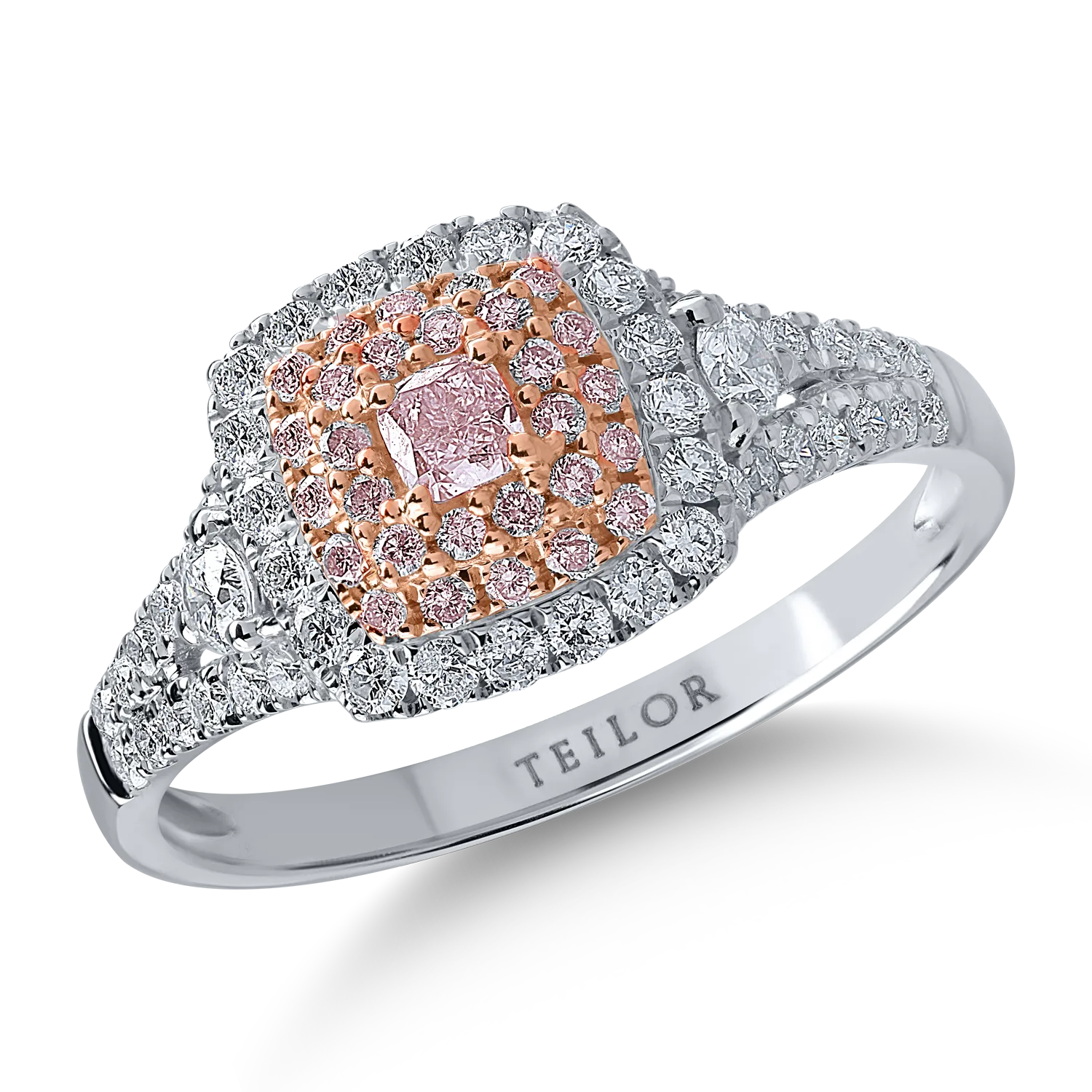 Inel din aur alb-roz cu diamante transparente de 0.51ct si diamante roz cushion si rotunde de 0.23ct