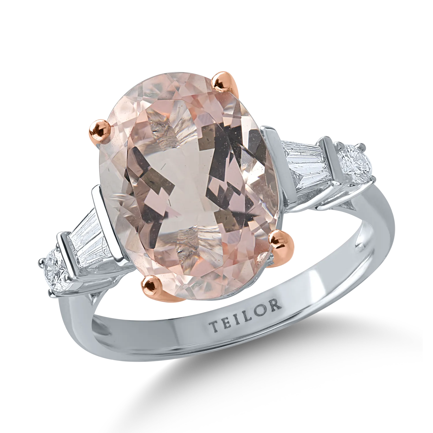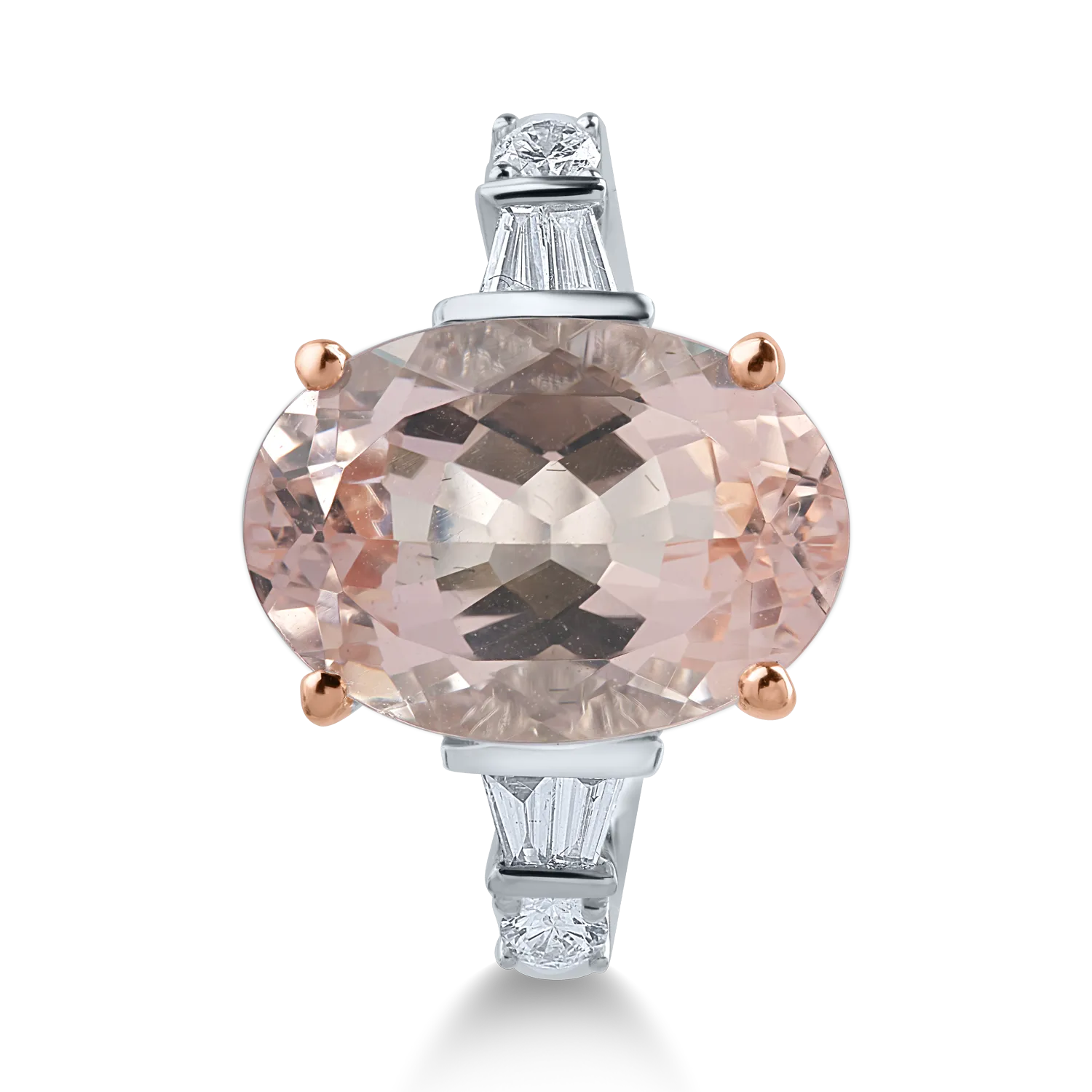 Inel din aur alb-roz cu morganit oval de 5.4ct si diamante de 0.2ct