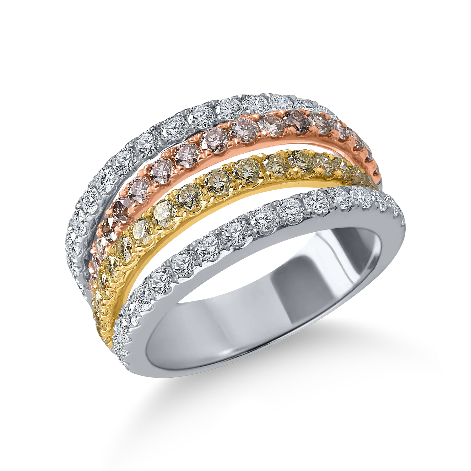 Inel din aur alb-roz-galben cu diamante microsetting de 1.7ct