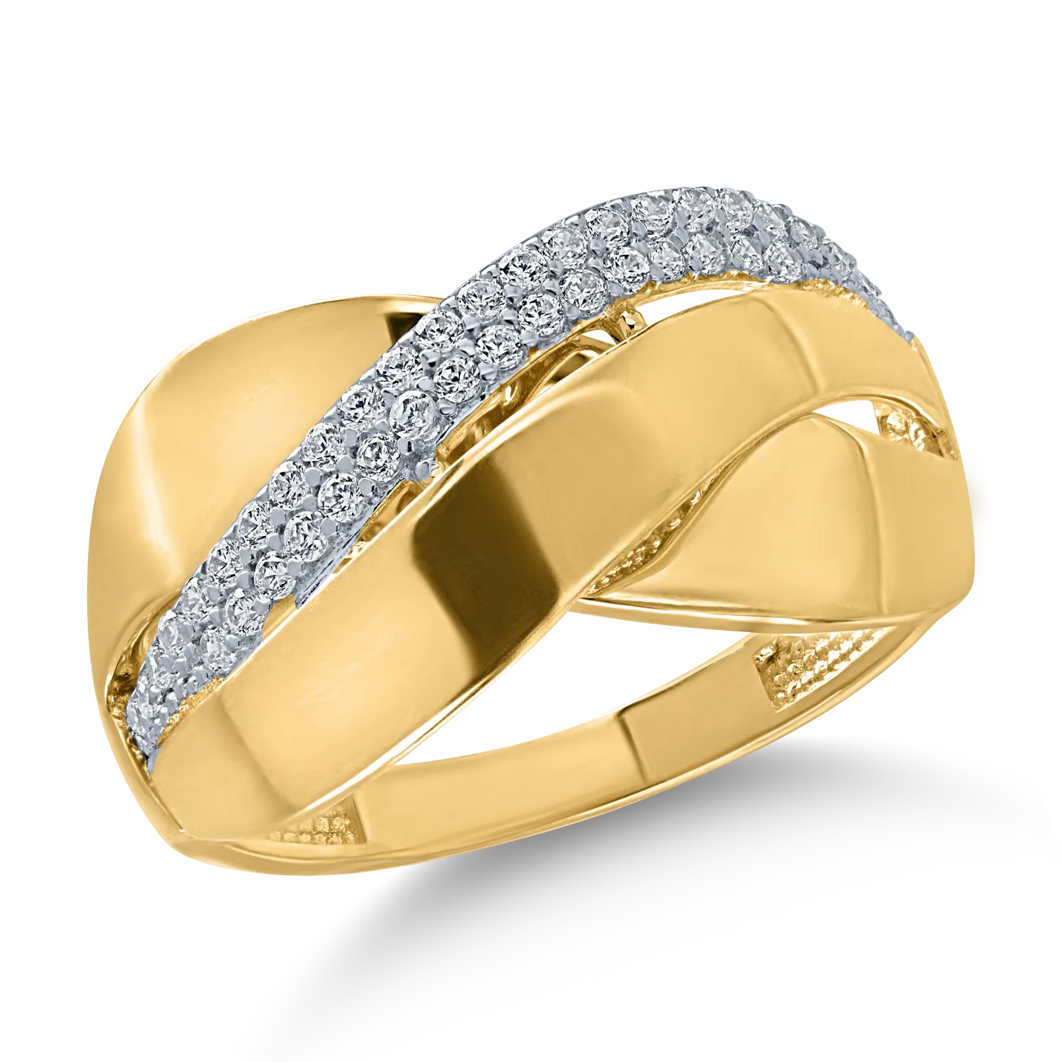Feminitate si atitudine. Cu un design original, acest inel din aur galben te poarta intr-o calatorie unica, iti accentueaza farmecul si ofera o alura vibranta stilului tau. Alege piesele care confera expresivitate personalitatii tale.