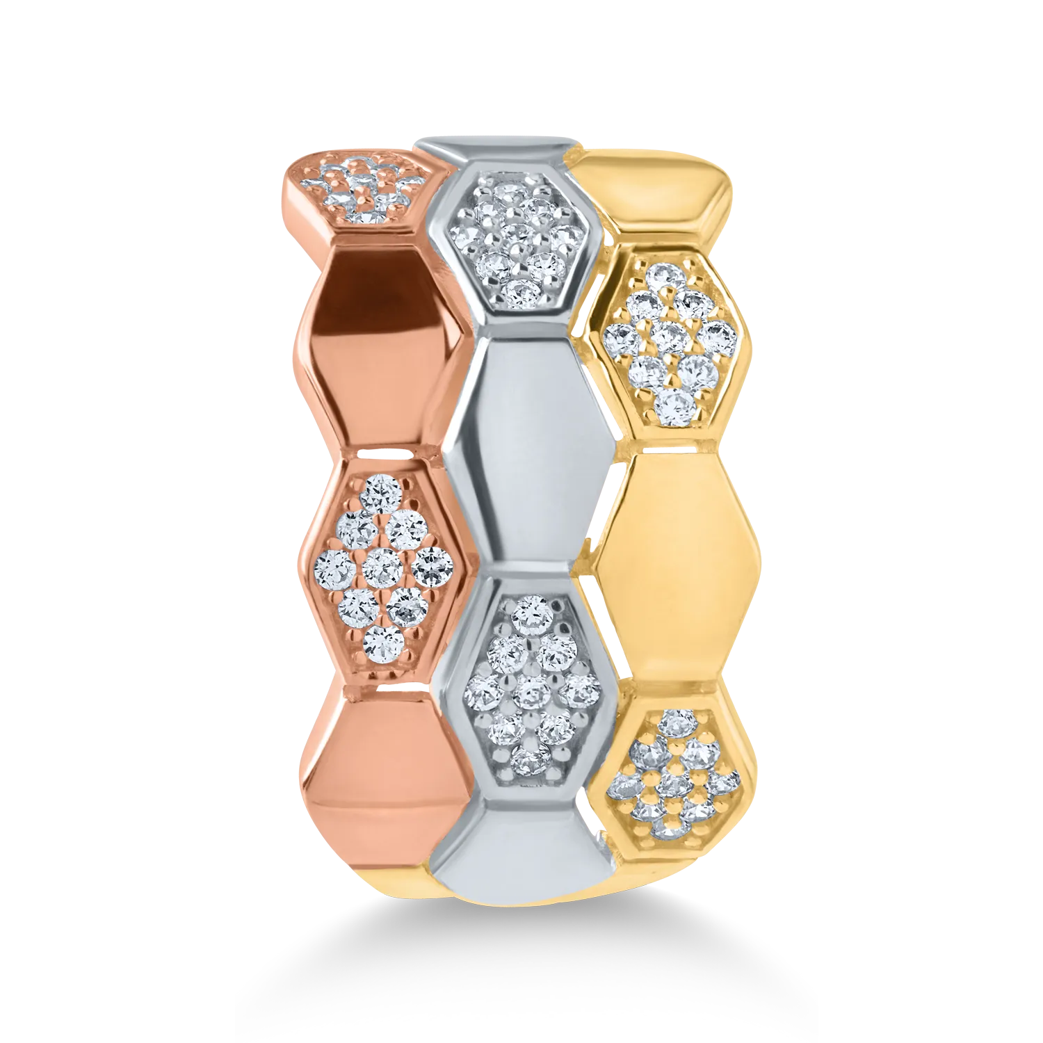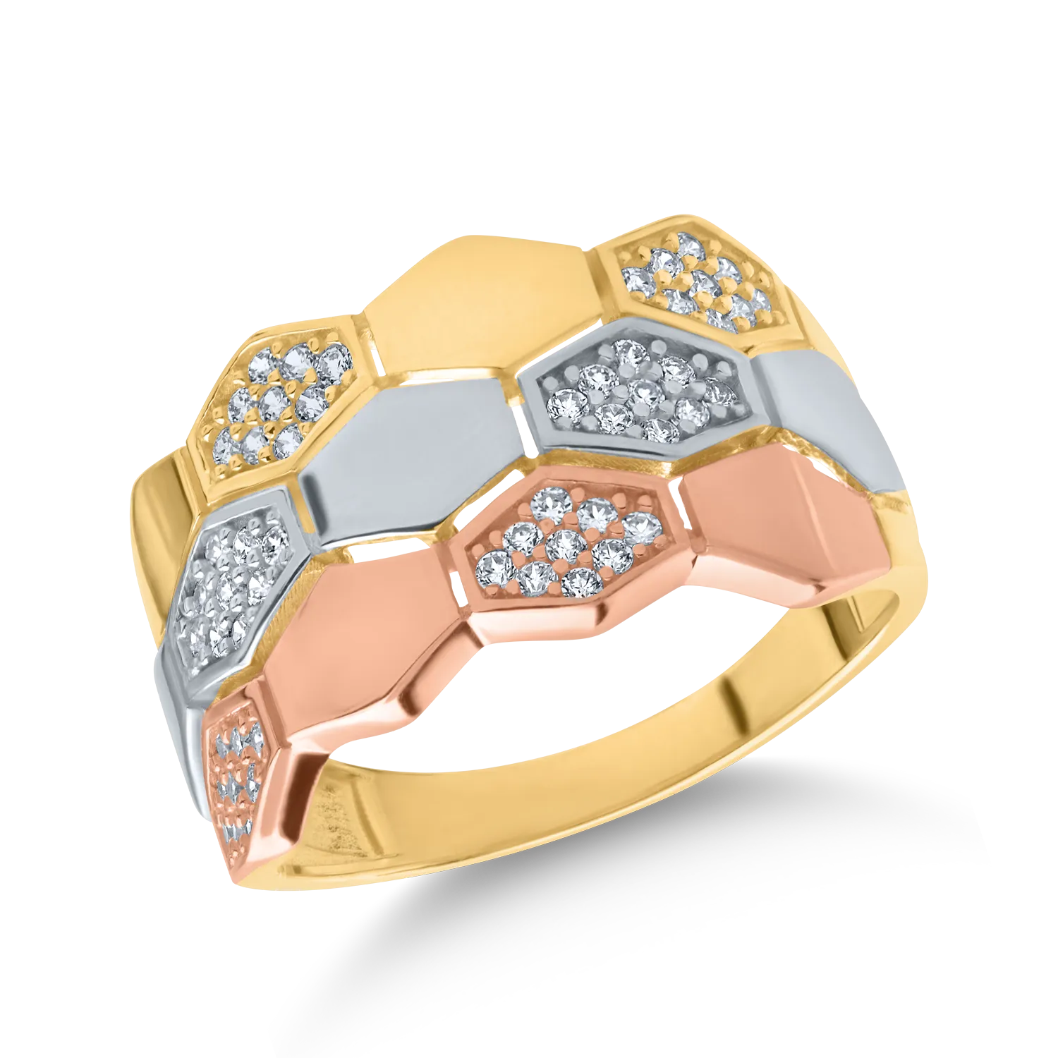 Feminitatea capata noi forme de expresie. Descopera acest inel din aur galben-alb-roz in care vei regasi elementele unui design rafinat si modern. Intra in lumea seducatoare TEILOR. O lume in care se regasesc cele care adora sa-si depaseasca limitele.