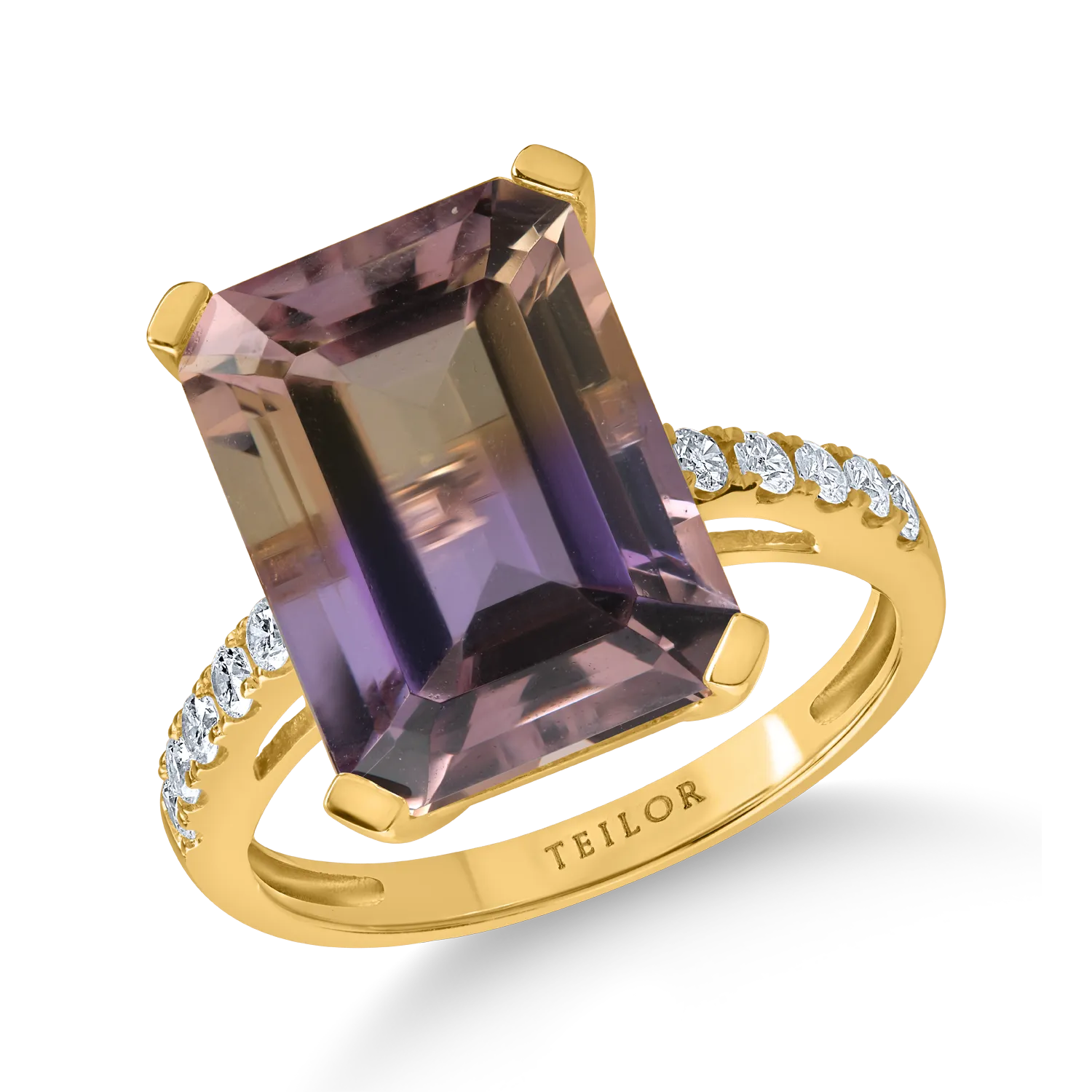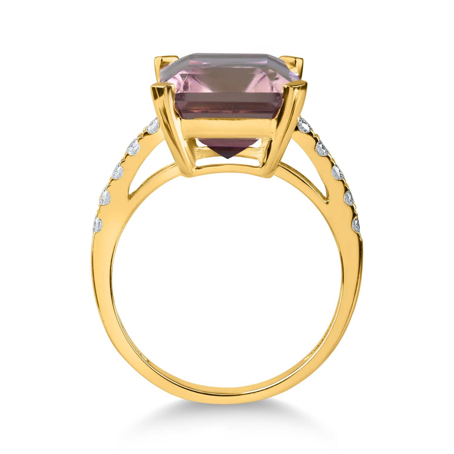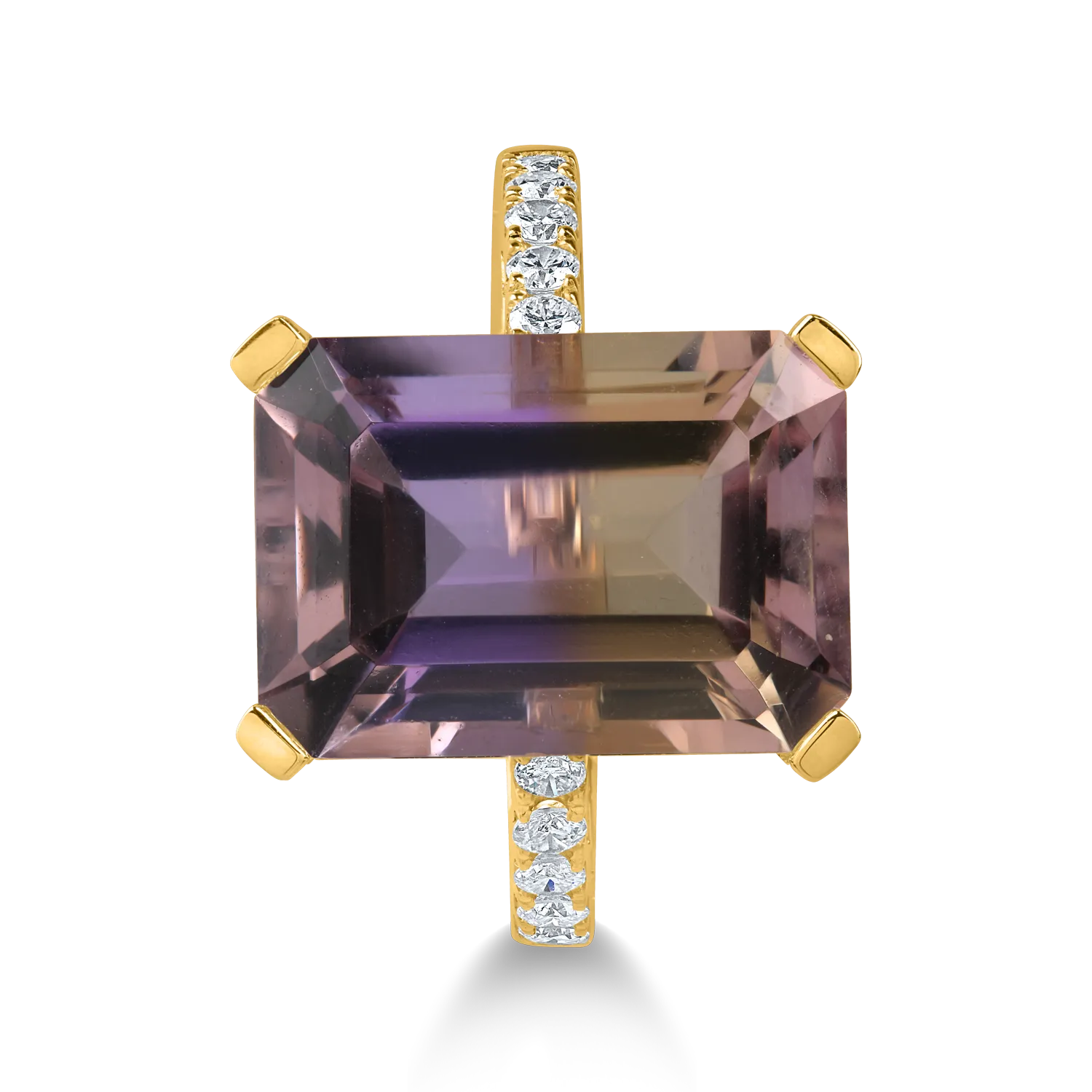 Inel din aur galben cu ametrin octogonal de 9.5ct si diamante de 0.1ct