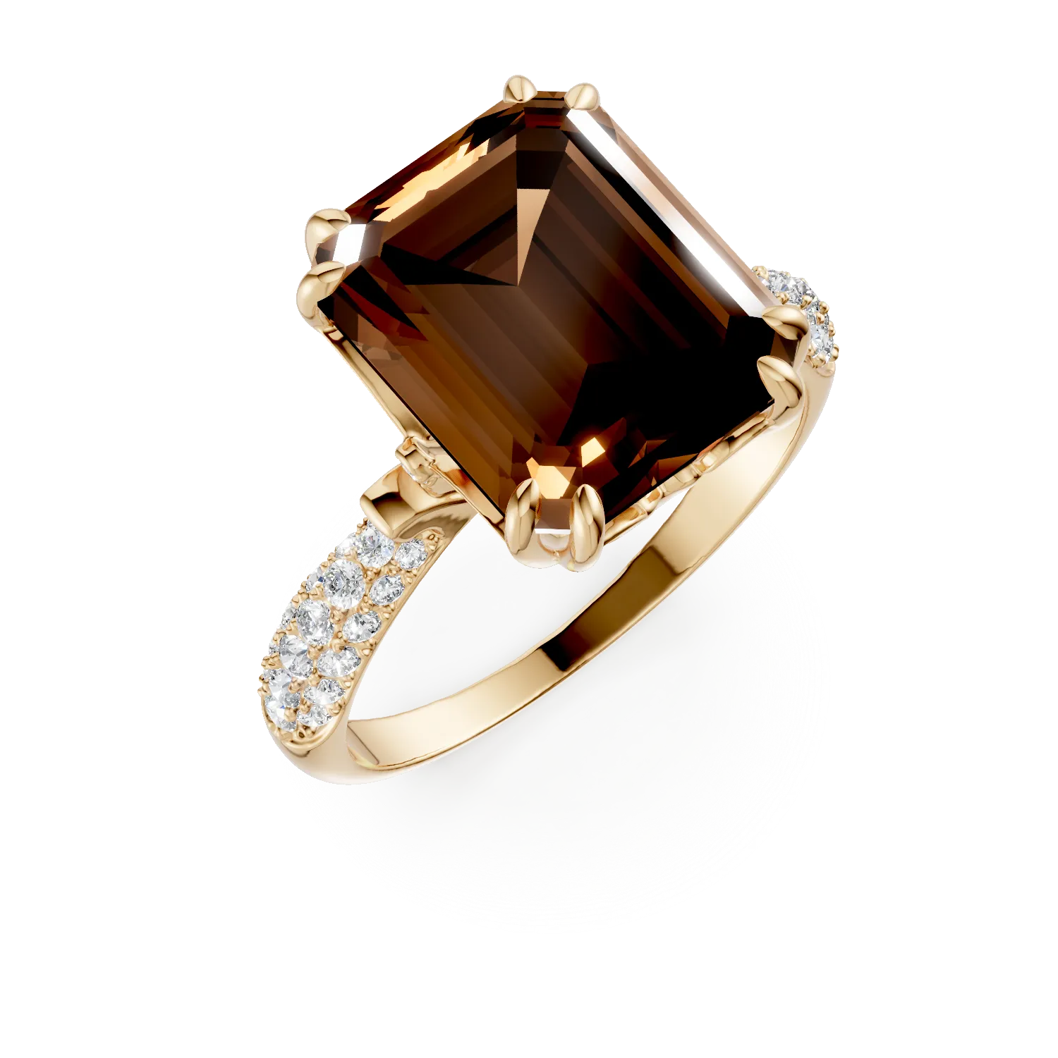 Inel din aur galben cu cuart fumuriu octogonal de 5.2ct si diamante de 0.3ct