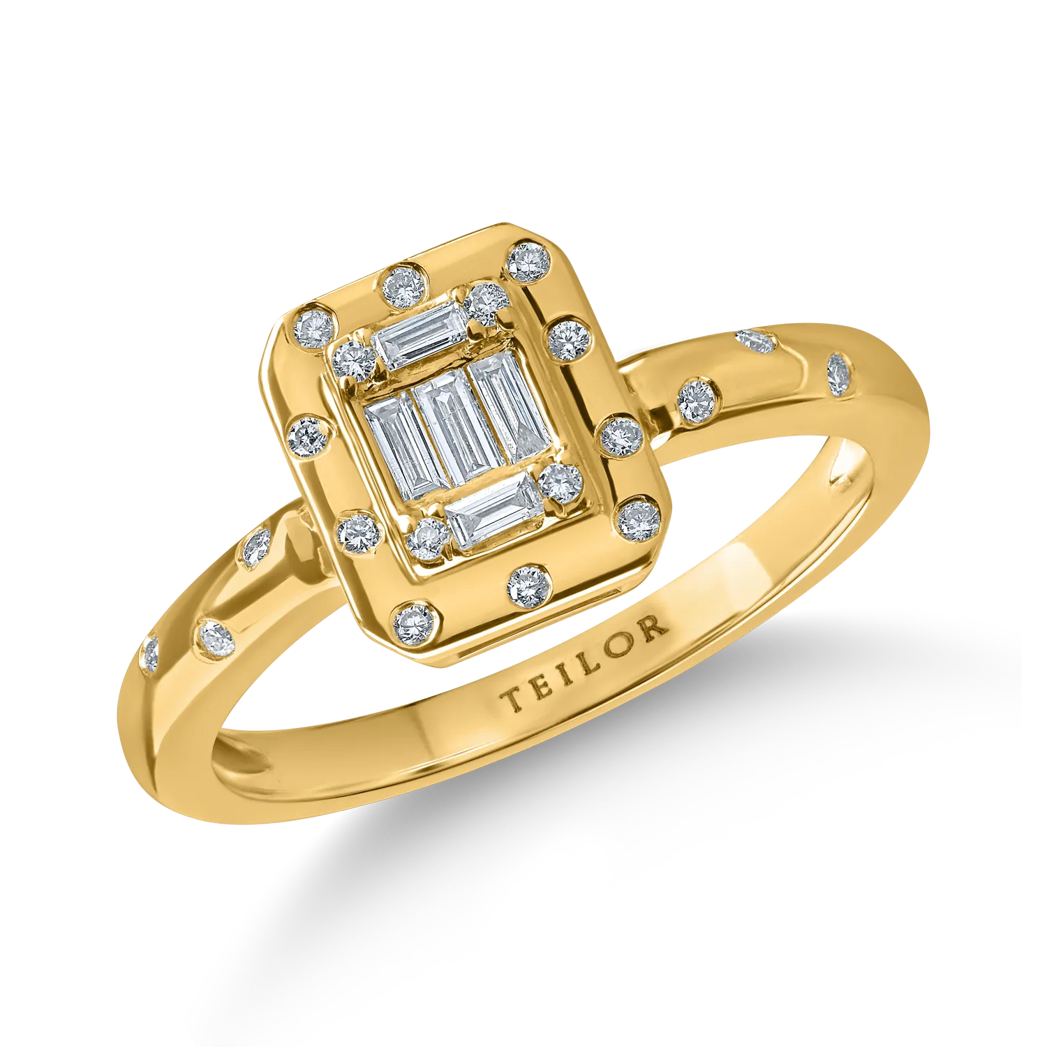 Inel din aur galben cu diamante baguette si rotunde de 0.2ct
