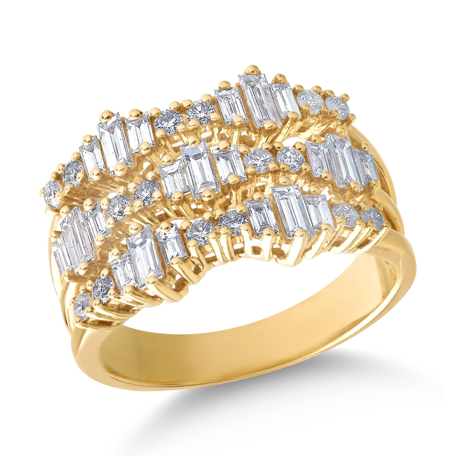 Inel din aur galben cu diamante baguette si rotunde de 1.1ct
