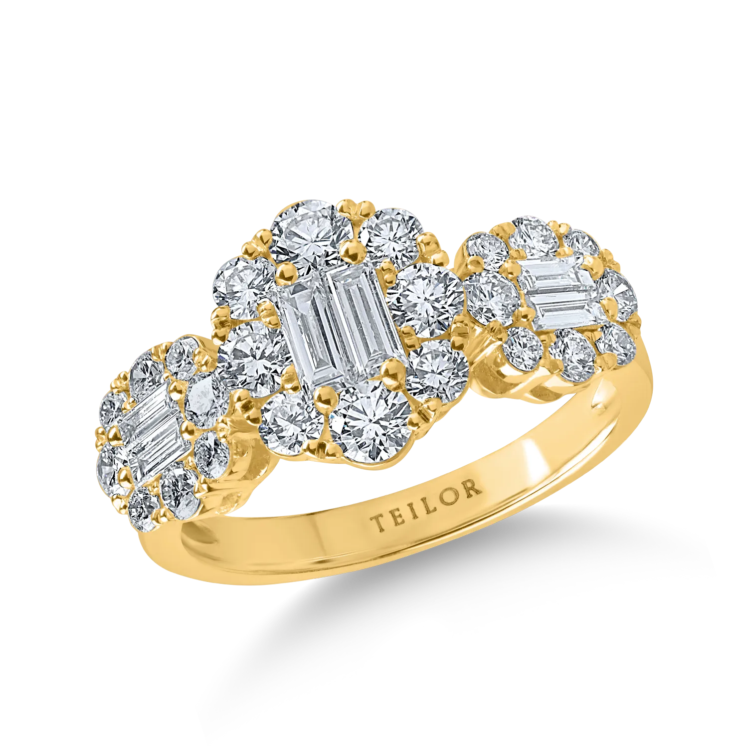 Inel din aur galben cu diamante baguette si rotunde de 1.4ct
