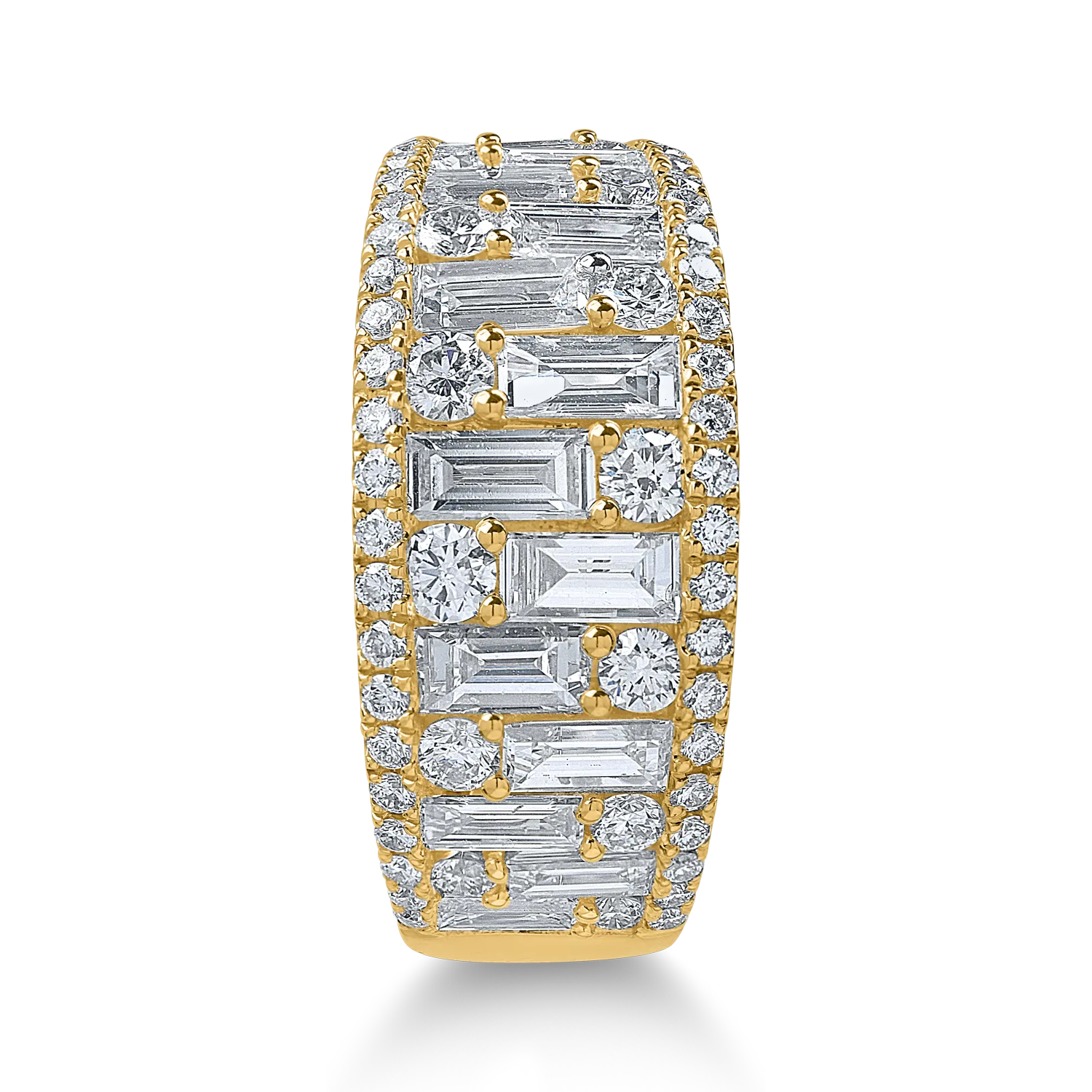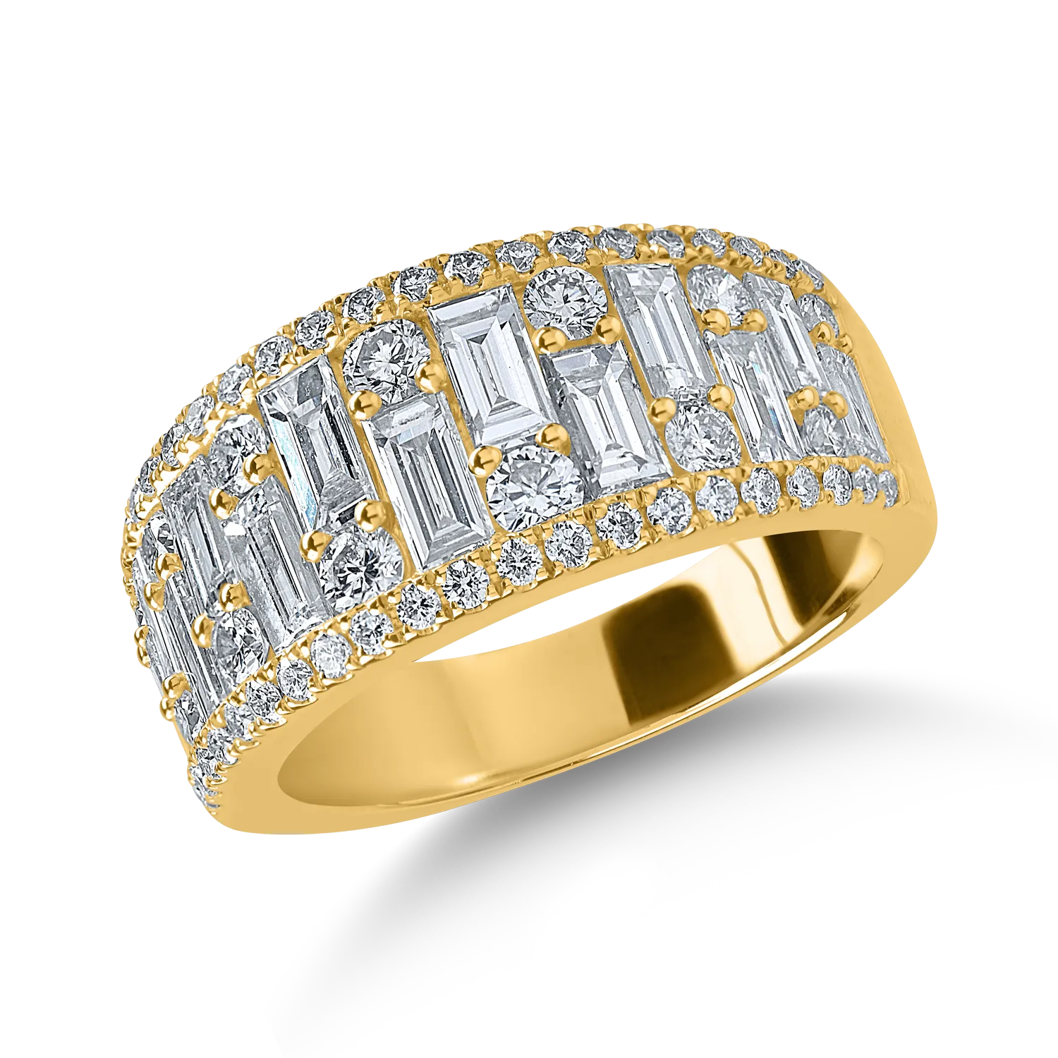 Inel din aur galben cu diamante baguette si rotunde de 2.2ct