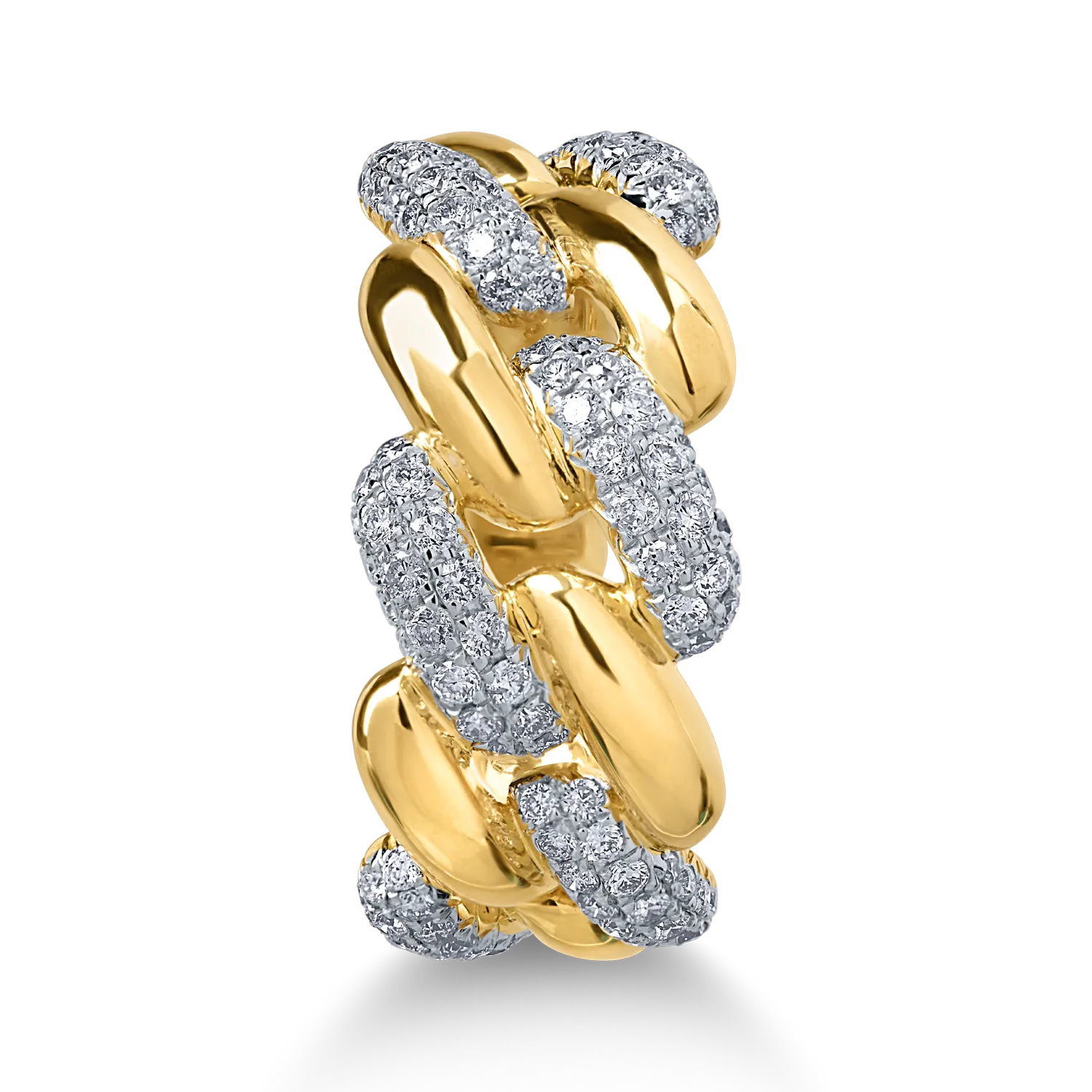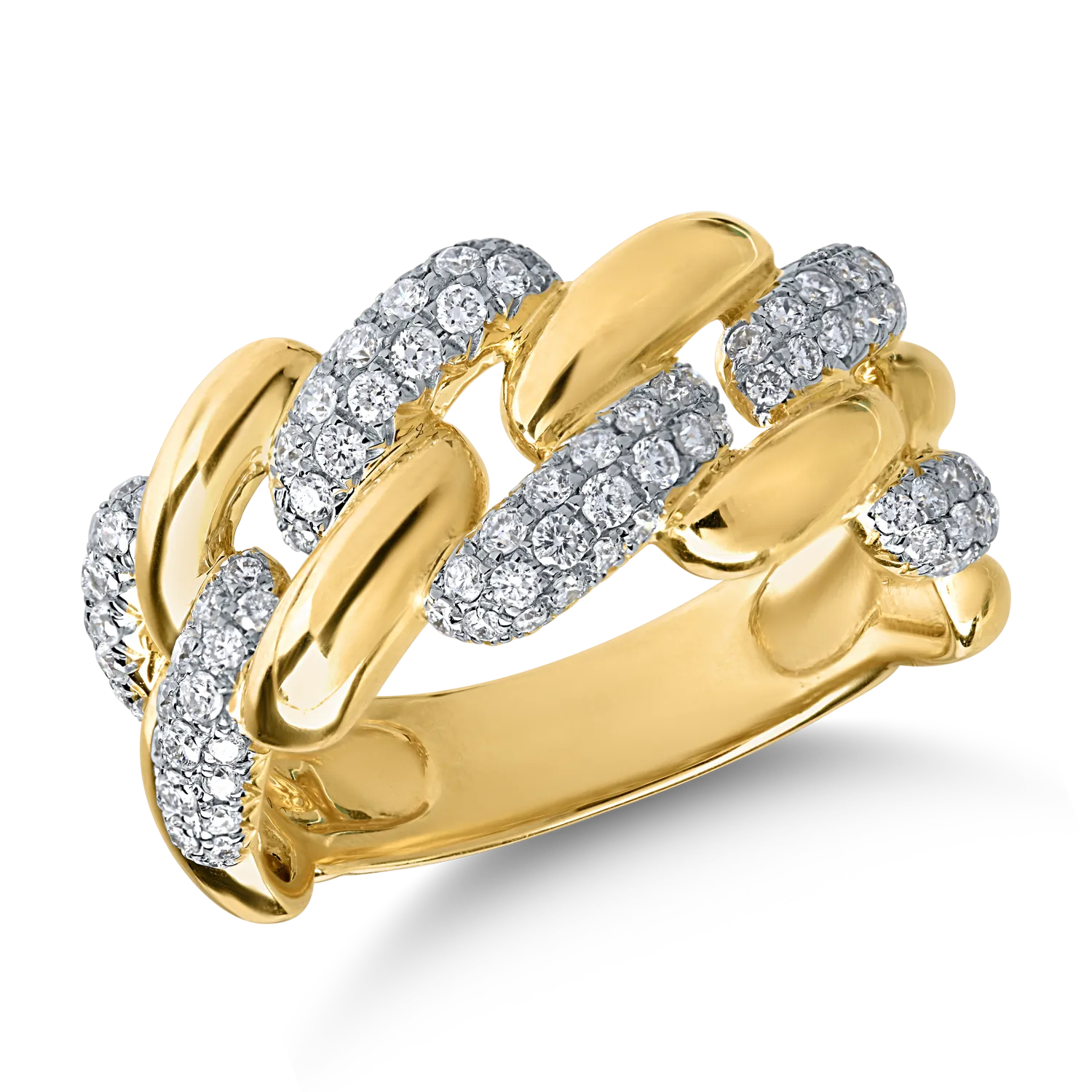 Poarta cu incredere bijuteriile preferate si dezvaluie noi fatete ale feminitatii tale. Un inel din aur galben cu diamante de 0.65ct in care se reflecta dragostea pentru eleganta si rafinament. Alege piesele care confera expresivitate personalitatii tale.