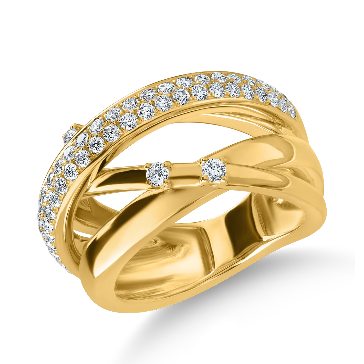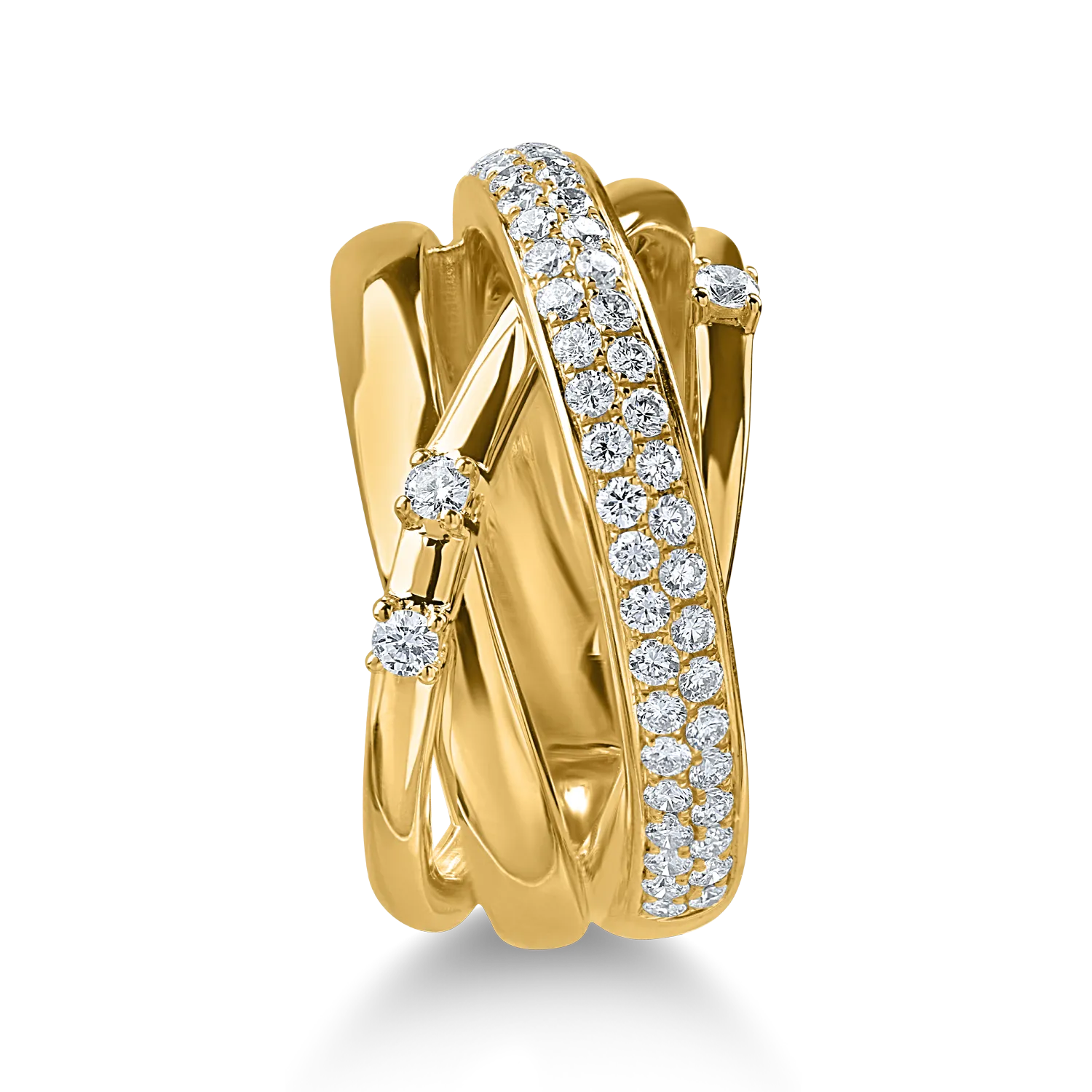 Poarta cu incredere bijuteriile preferate si dezvaluie noi fatete ale feminitatii tale. Un inel din aur galben cu diamante de 0.7ct creat din pasiune pentru accesoriile care te fac sa te simti speciala. O combinatie naturala a luxului, o piesa memorabila pentru femeile puternice.