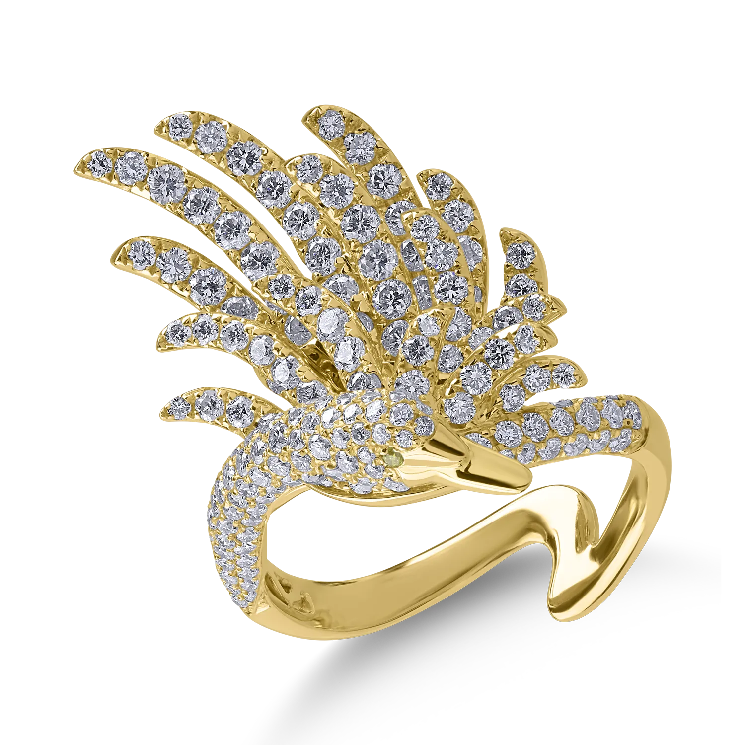 Feminitate si atitudine. Un inel din aur galben cu diamante incolore de 1.8ct si diamante galbene de 0.01ct in care se intalnesc nuante si reflexii vibrante, o declaratie stilistica plina de expresivitate. Alege perfectiunea cu TEILOR, o lume in care cream povesti memorabile impreuna cu tine.