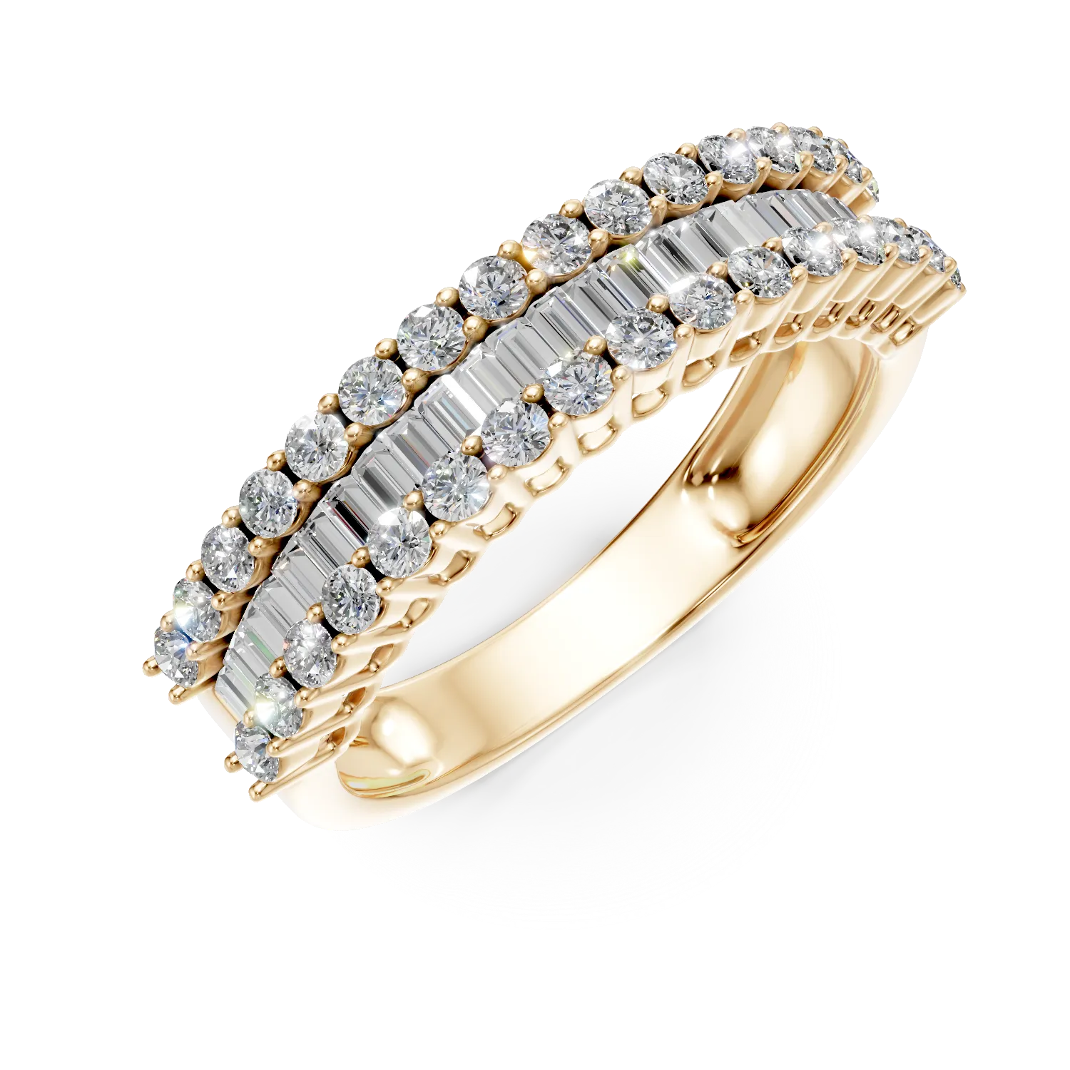 Inel din aur galben cu diamante microsetting baguette si rotunde de 0.9ct