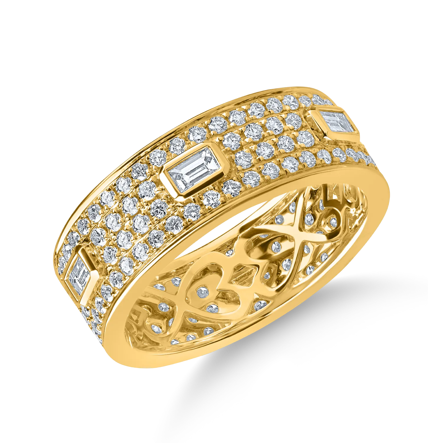 Inel din aur galben cu diamante microsetting baguette si rotunde de 1.3ct
