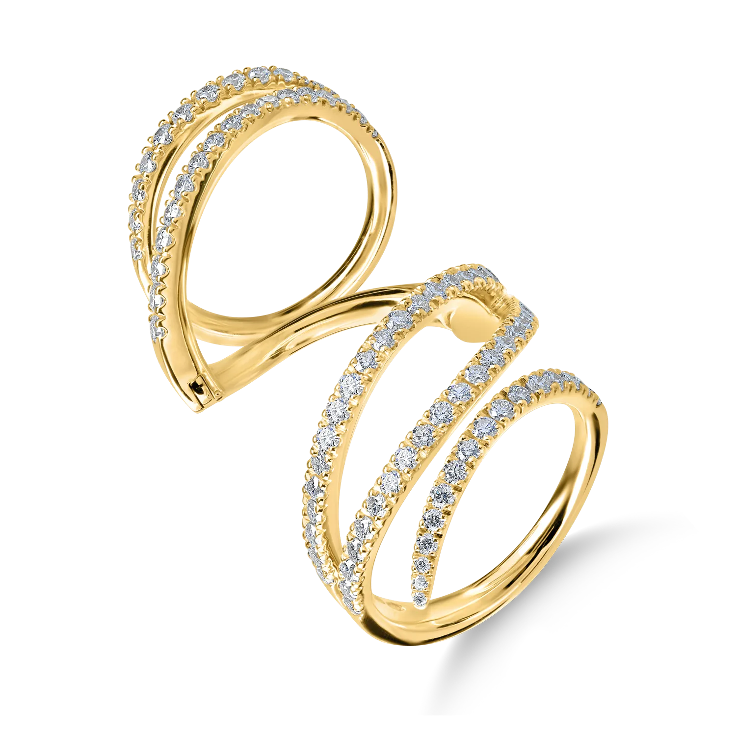 Feminitatea capata noi forme de expresie. Originalitatea si rafinamentul se intalnesc in acest inel din aur galben cu diamante microsetting de 1.5ct creat pentru a-ti accentua farmecul personal. Colectiile TEILOR impresioneaza intotdeauna prin echilibrul dintre simplu si complex, clasic si contemporan.