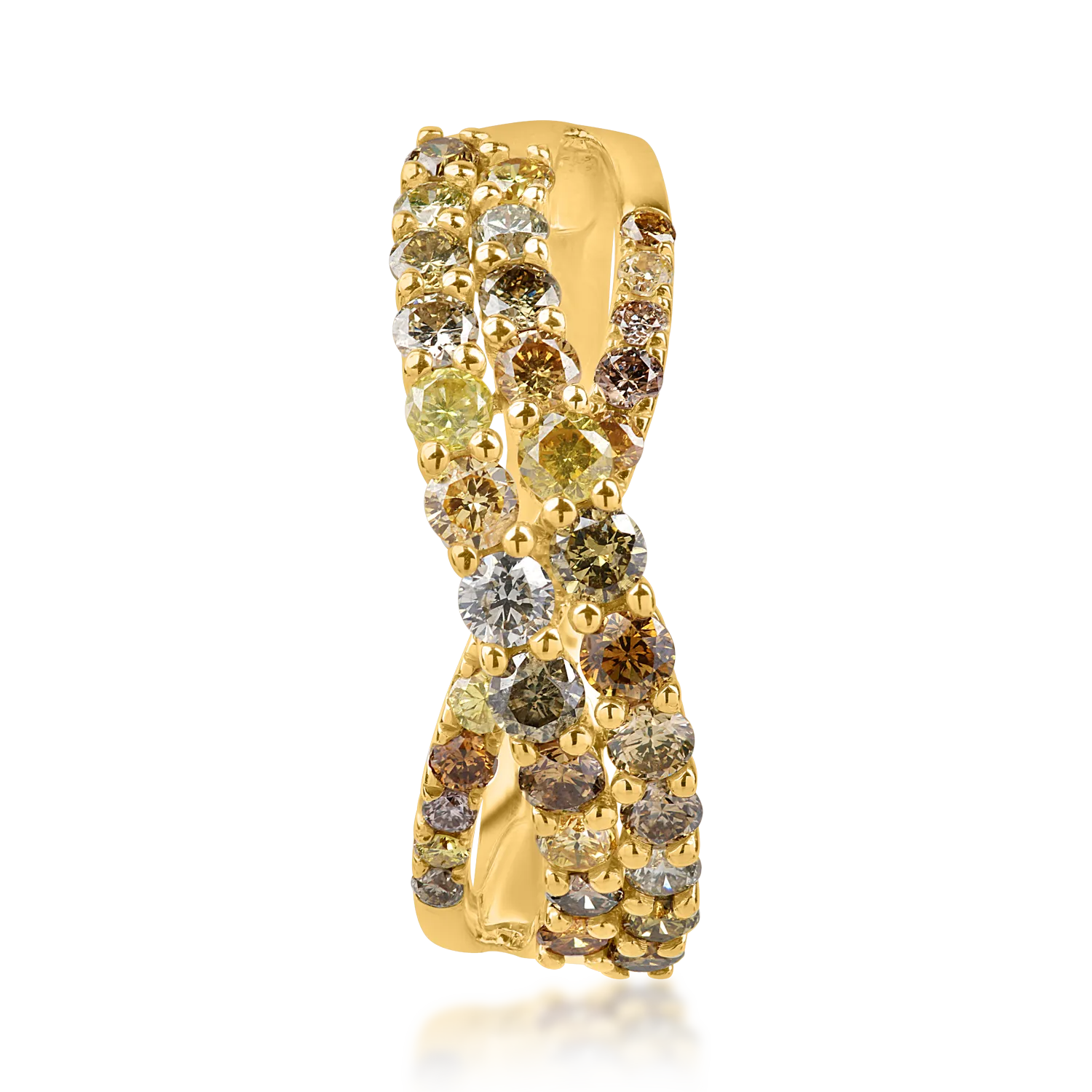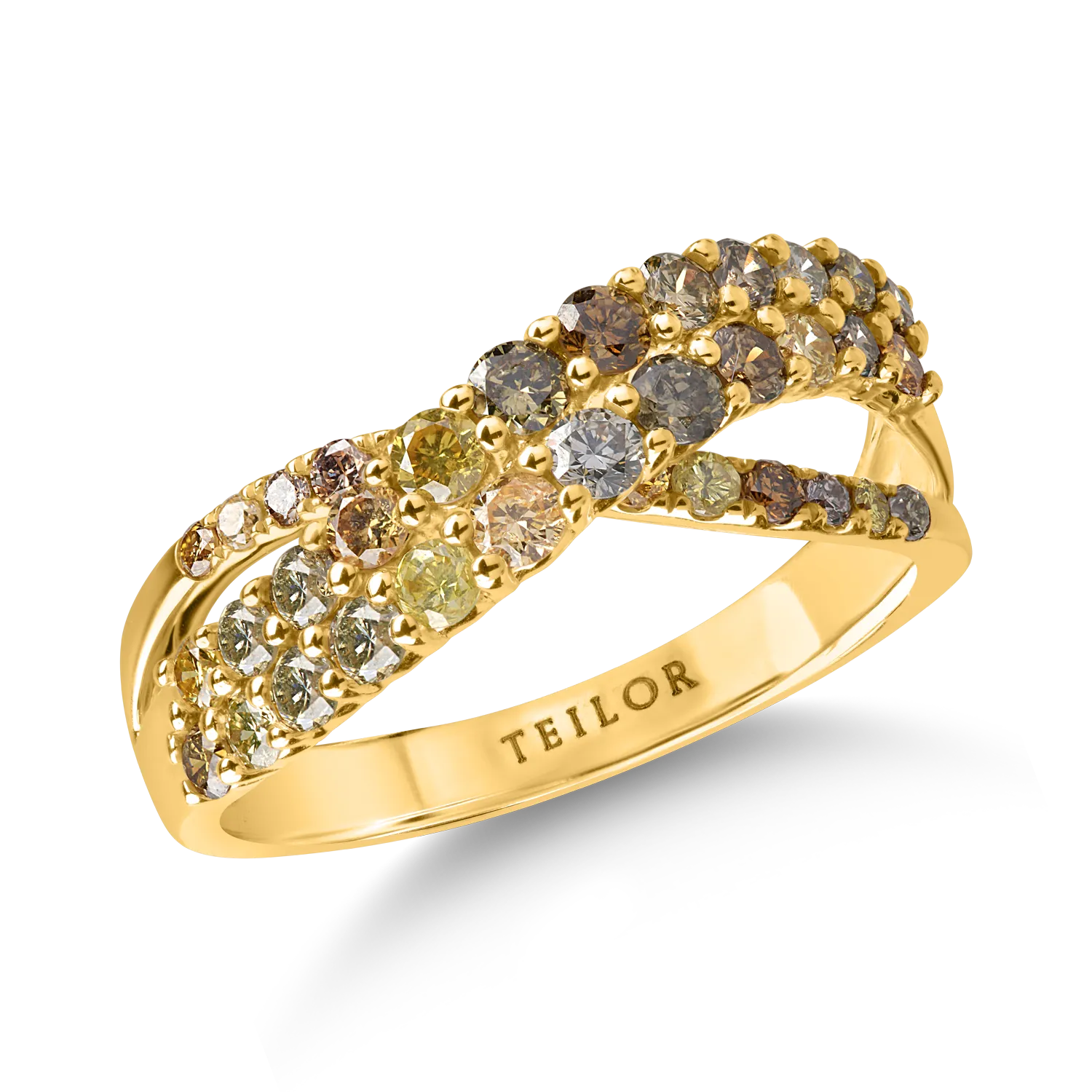 Feminitate si atitudine. Asorteaza acest inel din aur galben cu diamante multicolore de 1ct tinutelor preferate si exprima-te in mii de feluri. Intra in lumea seducatoare TEILOR. O lume in care se regasesc cele care adora sa-si depaseasca limitele.