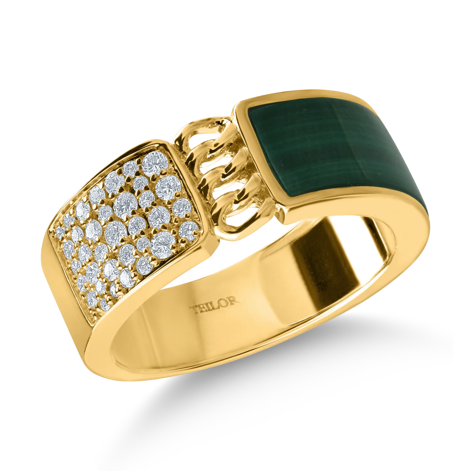 Inel din aur galben cu malachit rectangular de 2.9ct si diamante de 0.2ct