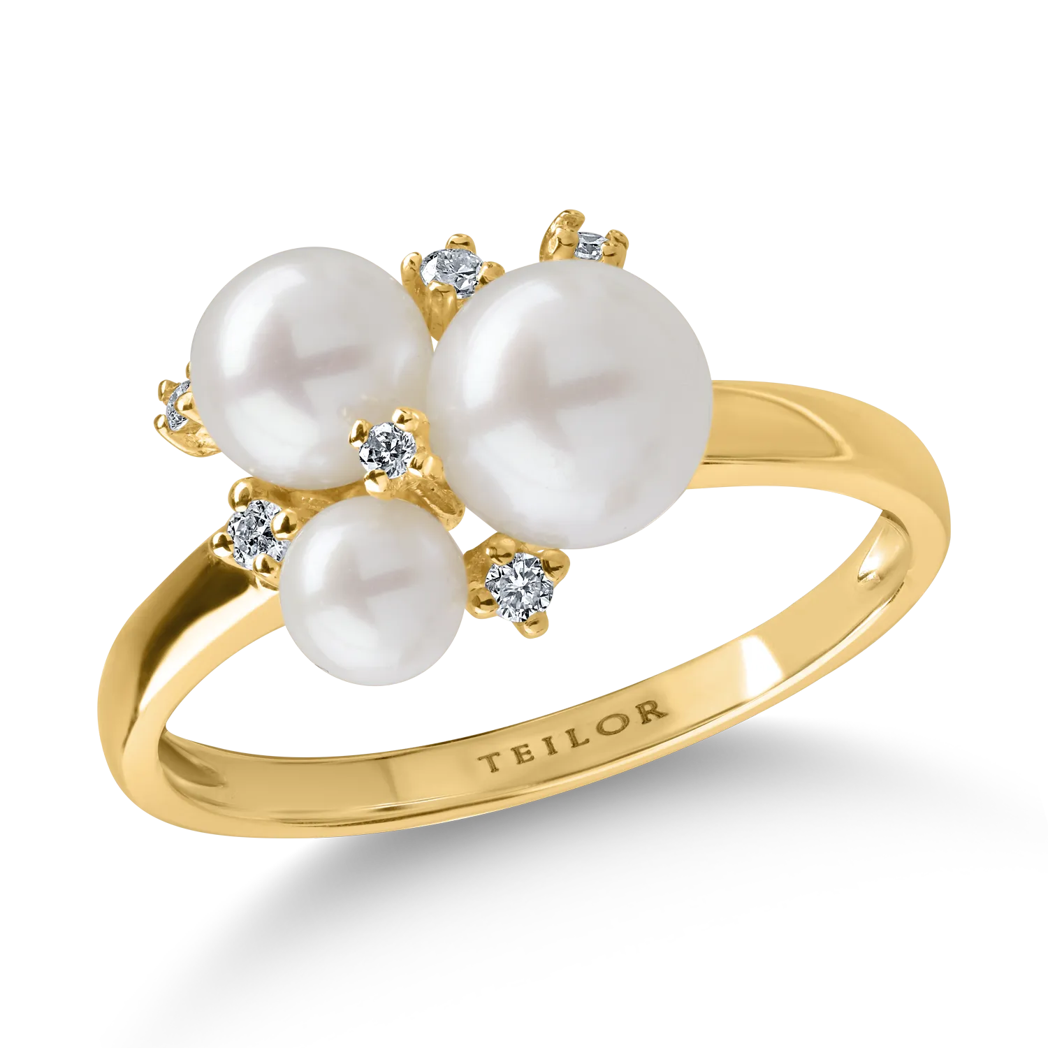 Inel din aur galben cu perle de cultura de 3.2ct si diamante de 0.08ct