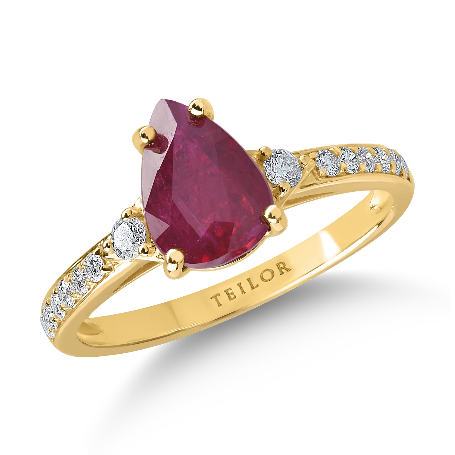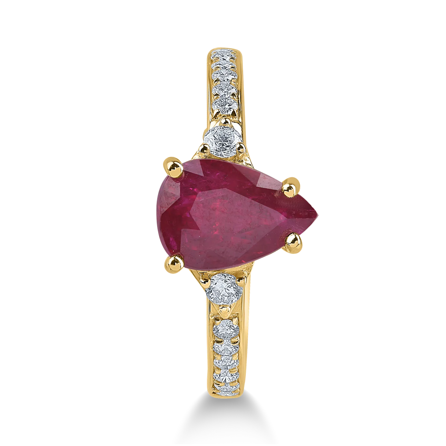 Inel din aur galben cu rubin pear de 1.7ct si diamante de 0.2ct