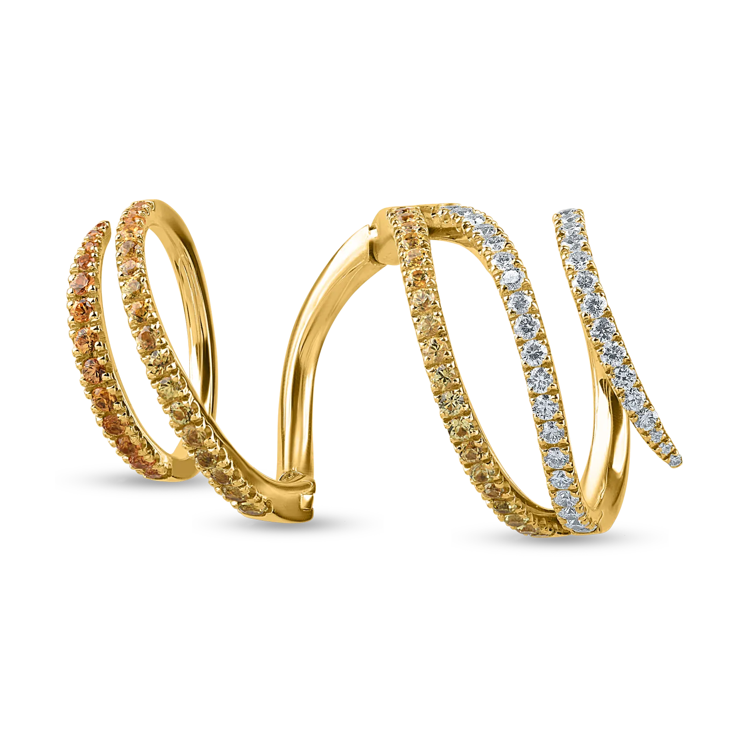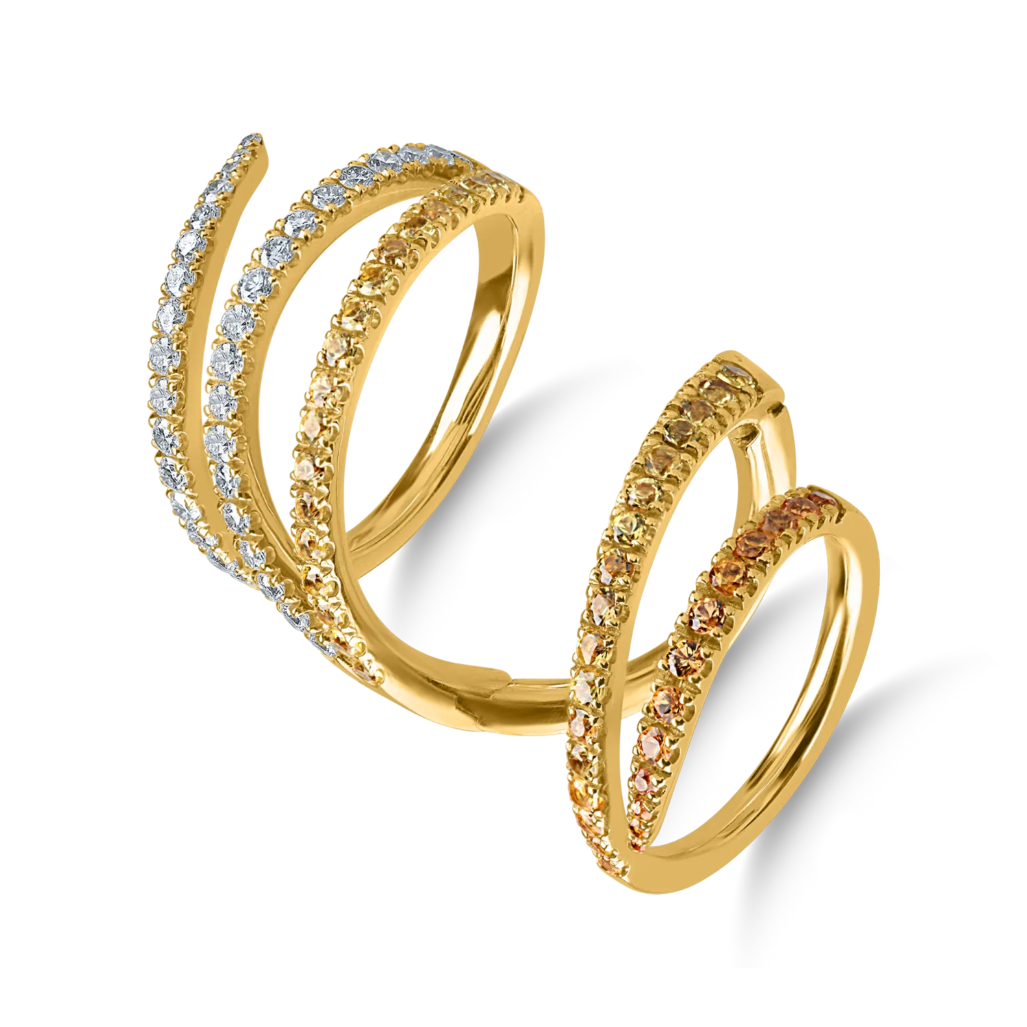Feminitate si atitudine. Originalitatea si rafinamentul se intalnesc in acest inel din aur galben cu safire galbene de 1.2ct si diamante 0.6ct creat pentru a-ti accentua farmecul personal. O combinatie naturala a luxului, o piesa memorabila pentru femeile puternice.