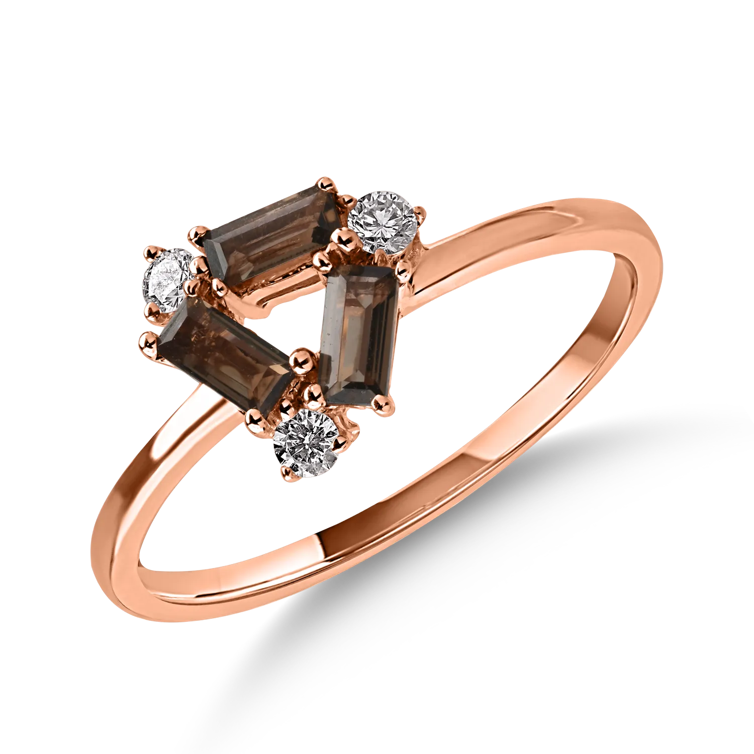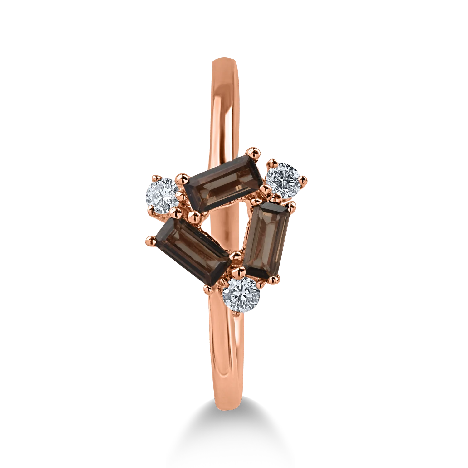 Inel din aur roz cu cuart fumuriu baguette de 0.3ct si diamante de 0.09ct