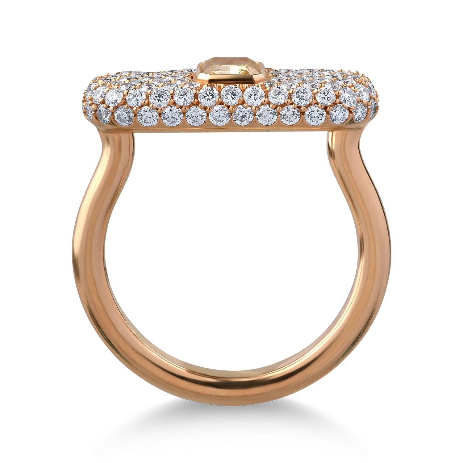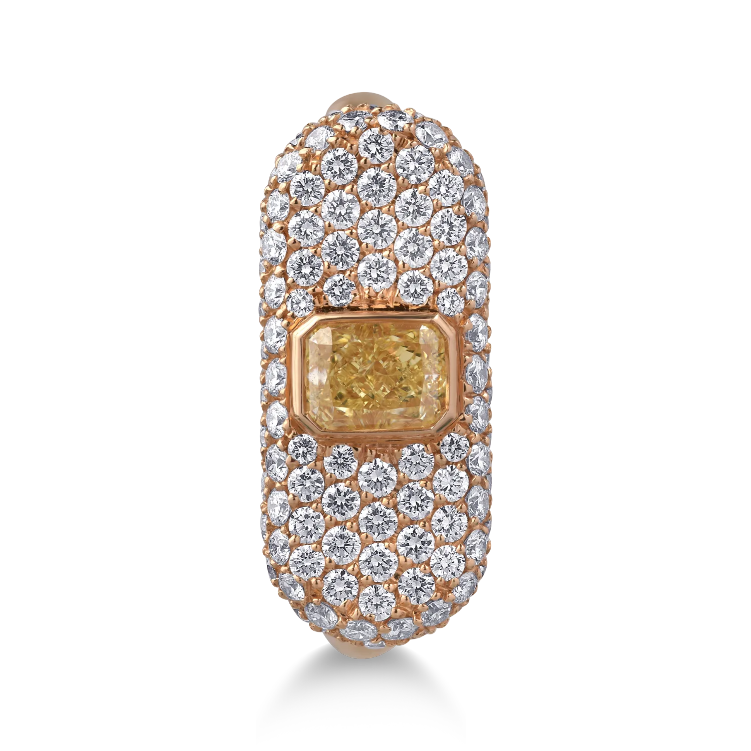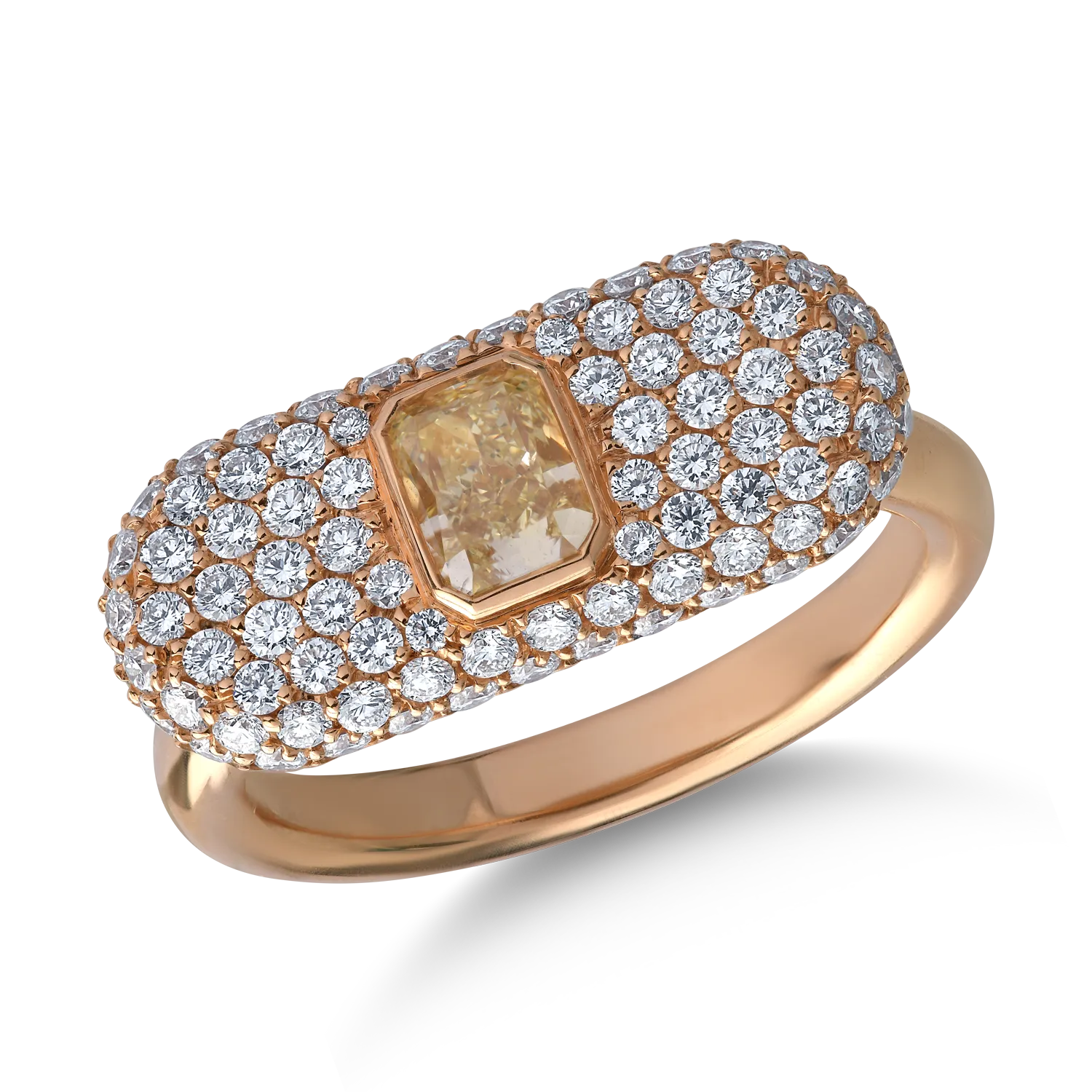 Inel din aur roz cu diamant fancy galben cushion de 0.6ct si diamante de 0.9ct