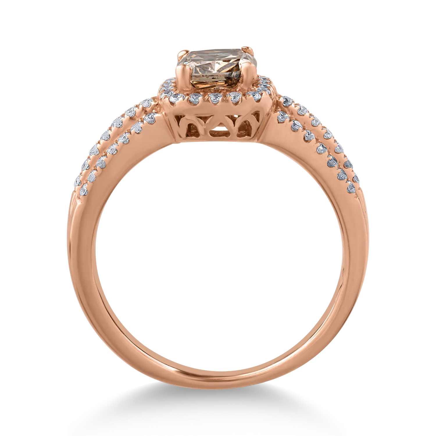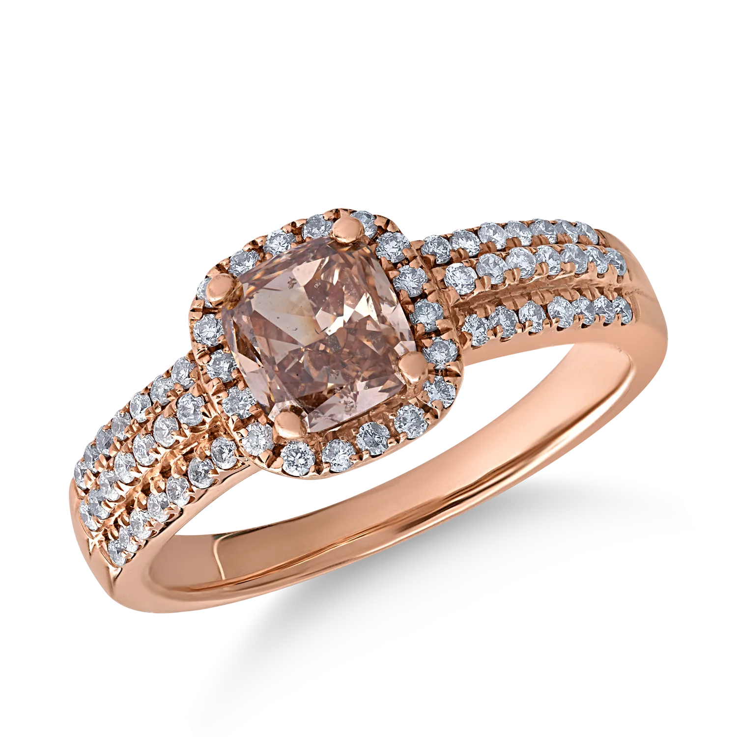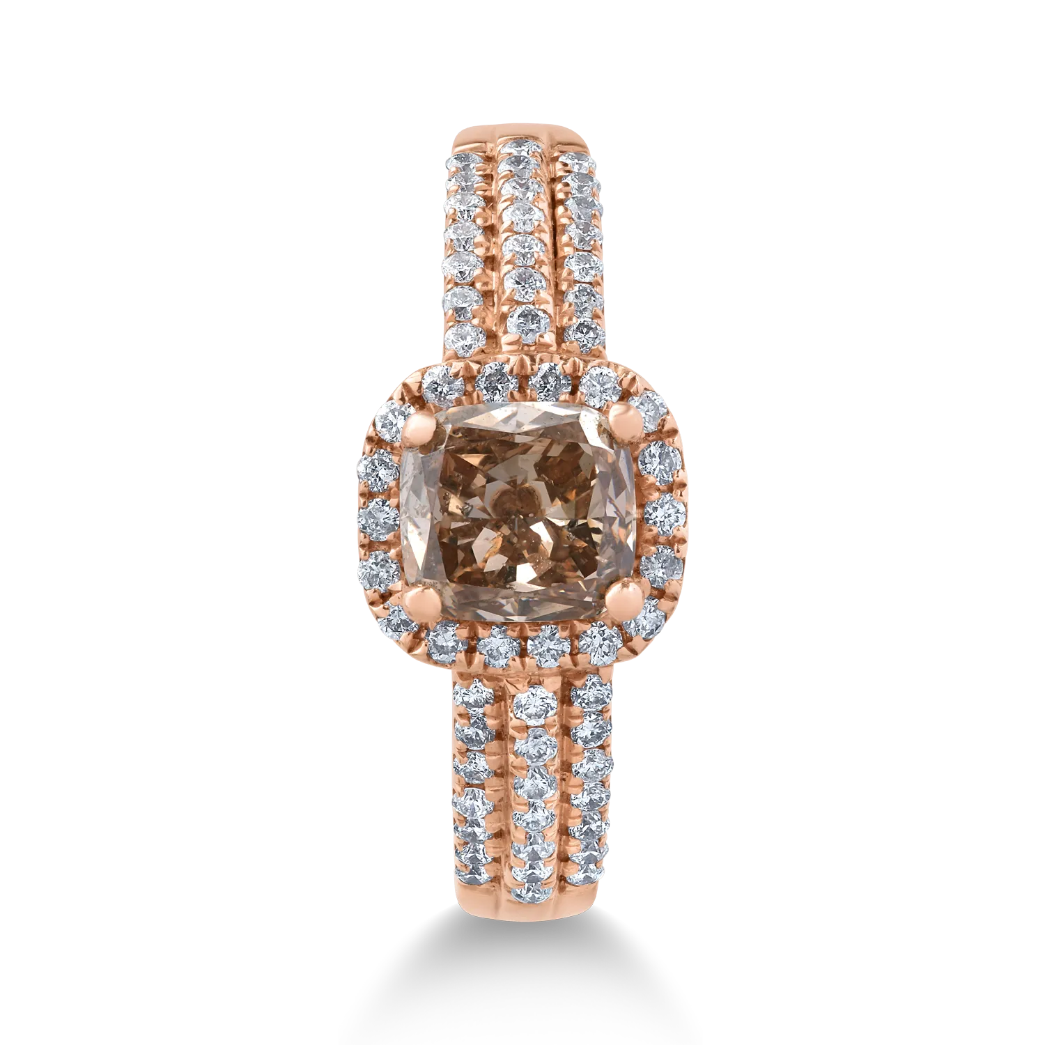 Inel din aur roz cu diamant maro cushion de 1ct si diamante transparente de 0.3ct
