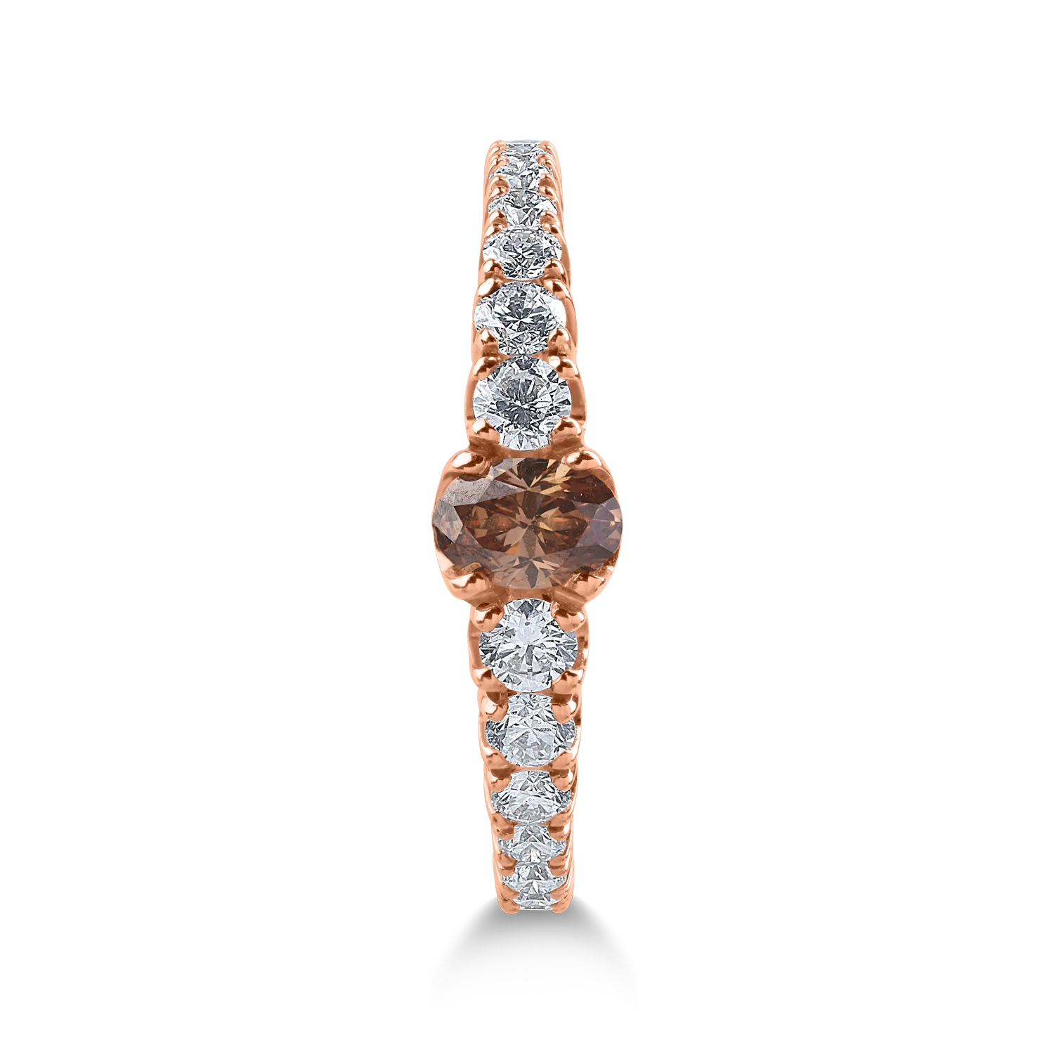 Inel din aur roz cu diamant maro de 0.3ct si diamante transparente de 0.73ct