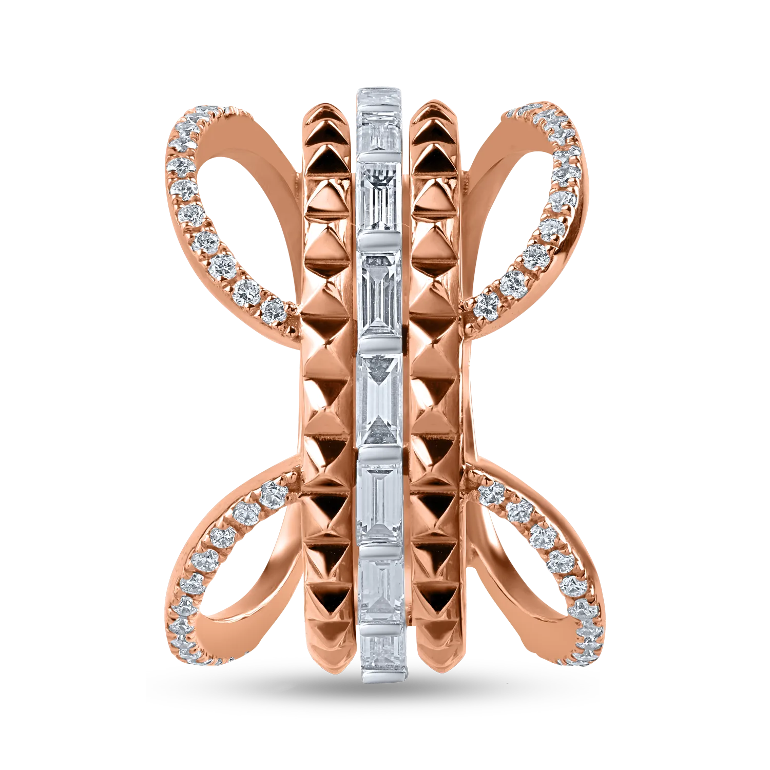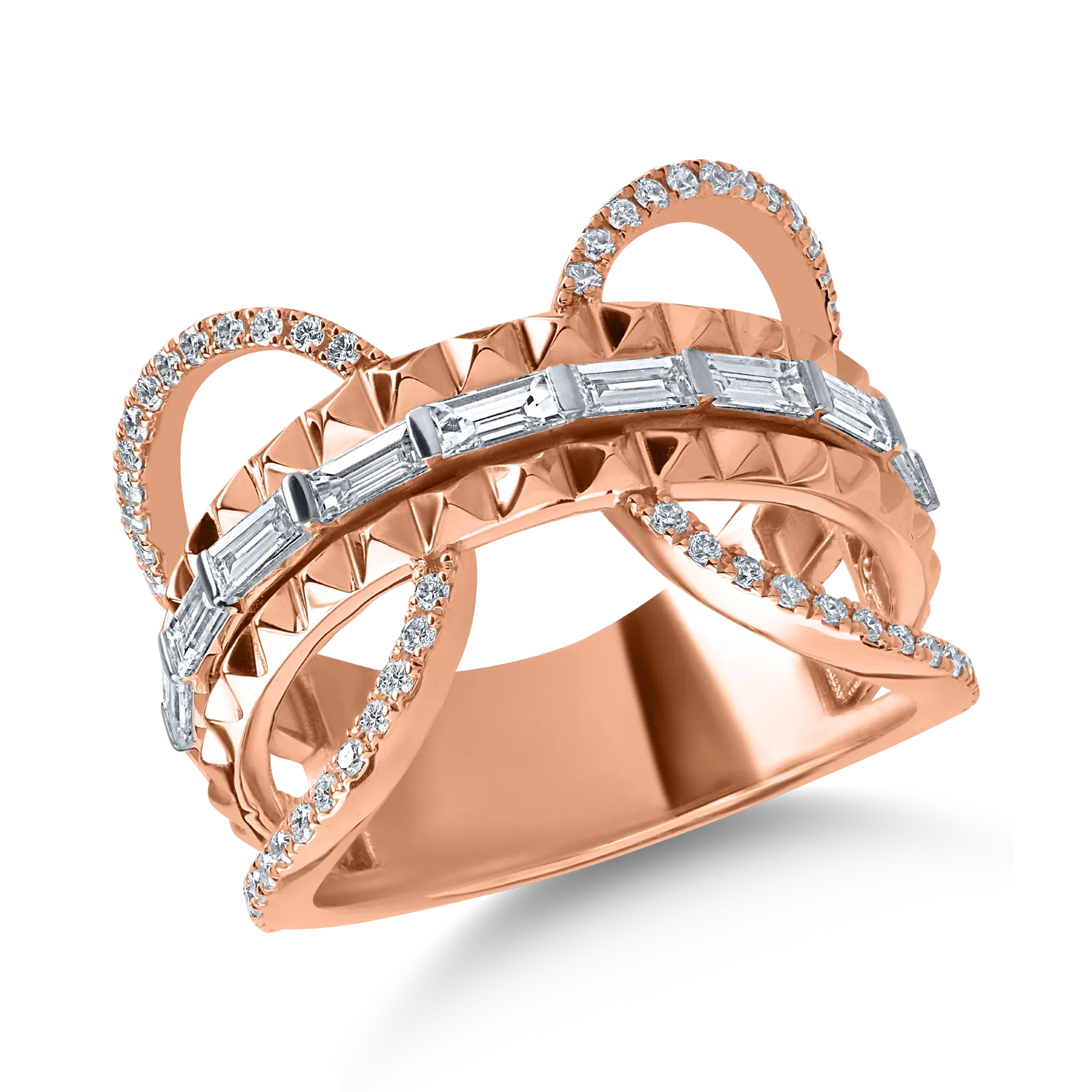 Inel din aur roz cu diamante baguette si rotunde de 0.96ct