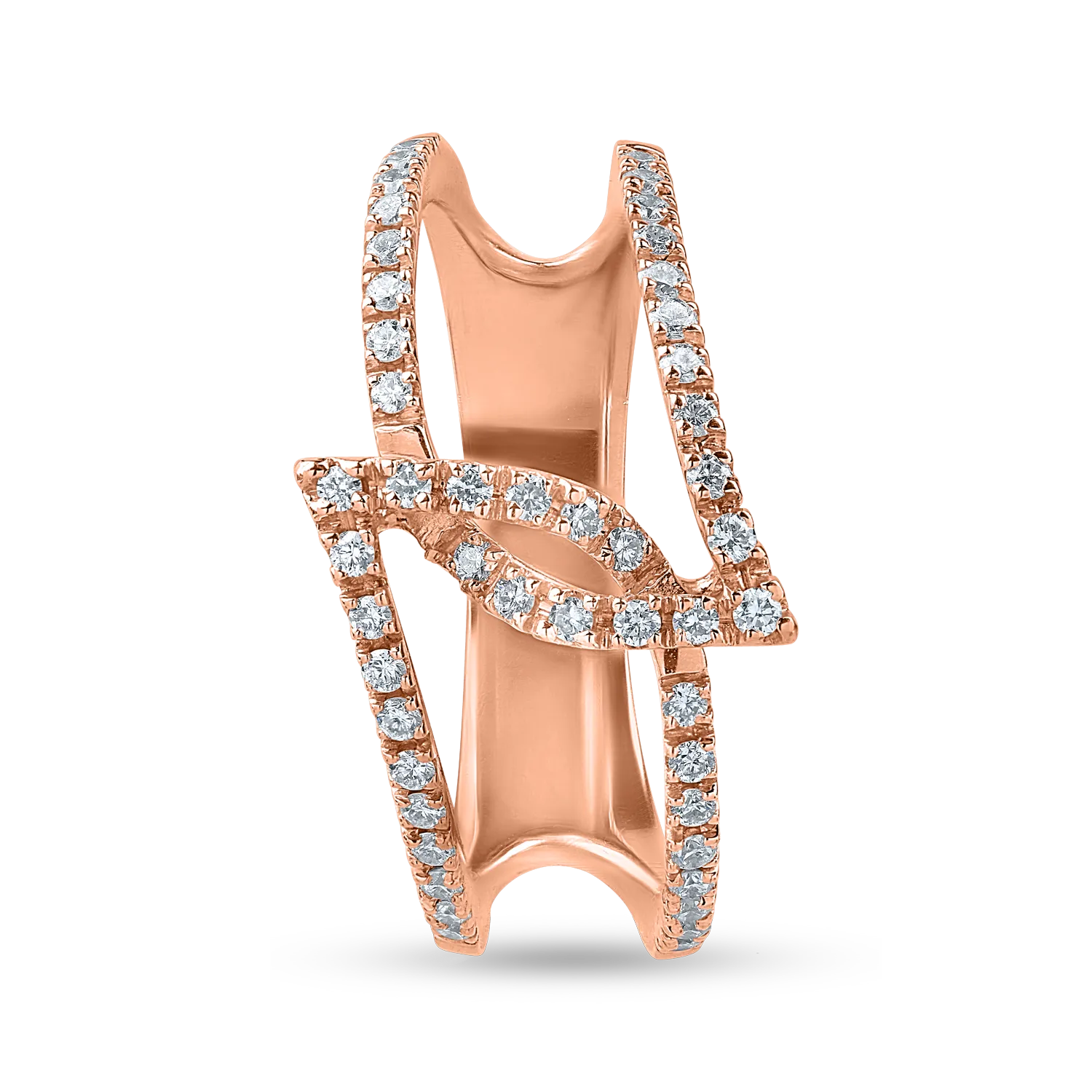 Feminitate si atitudine. Cu un design original, acest inel din aur roz cu diamante de 0.29ct te poarta intr-o calatorie unica, iti accentueaza farmecul si ofera o alura vibranta stilului tau. O combinatie naturala a luxului, o piesa memorabila pentru femeile puternice.