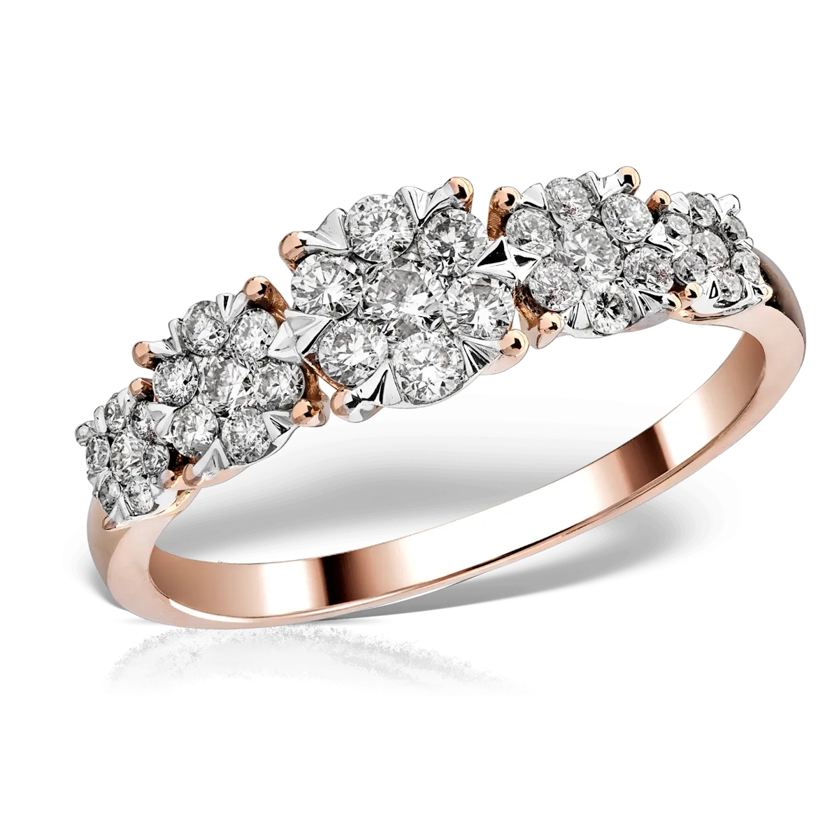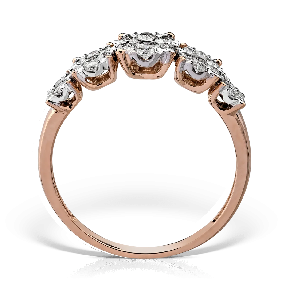Feminina, romantica, misterioasa, TU. Alege o bijuterie care transmite un aer misterios. Asorteaza acest inel din aur roz cu diamante de 0.5ct tinutelor preferate si exprima-te in mii de feluri. Intra in lumea seducatoare TEILOR. O lume in care se regasesc cele care adora sa-si depaseasca limitele.