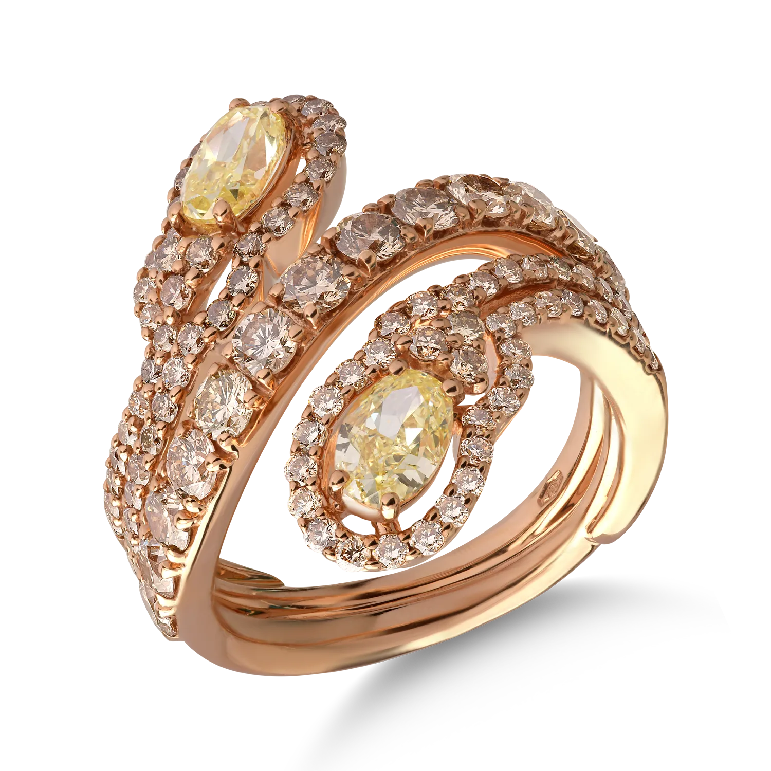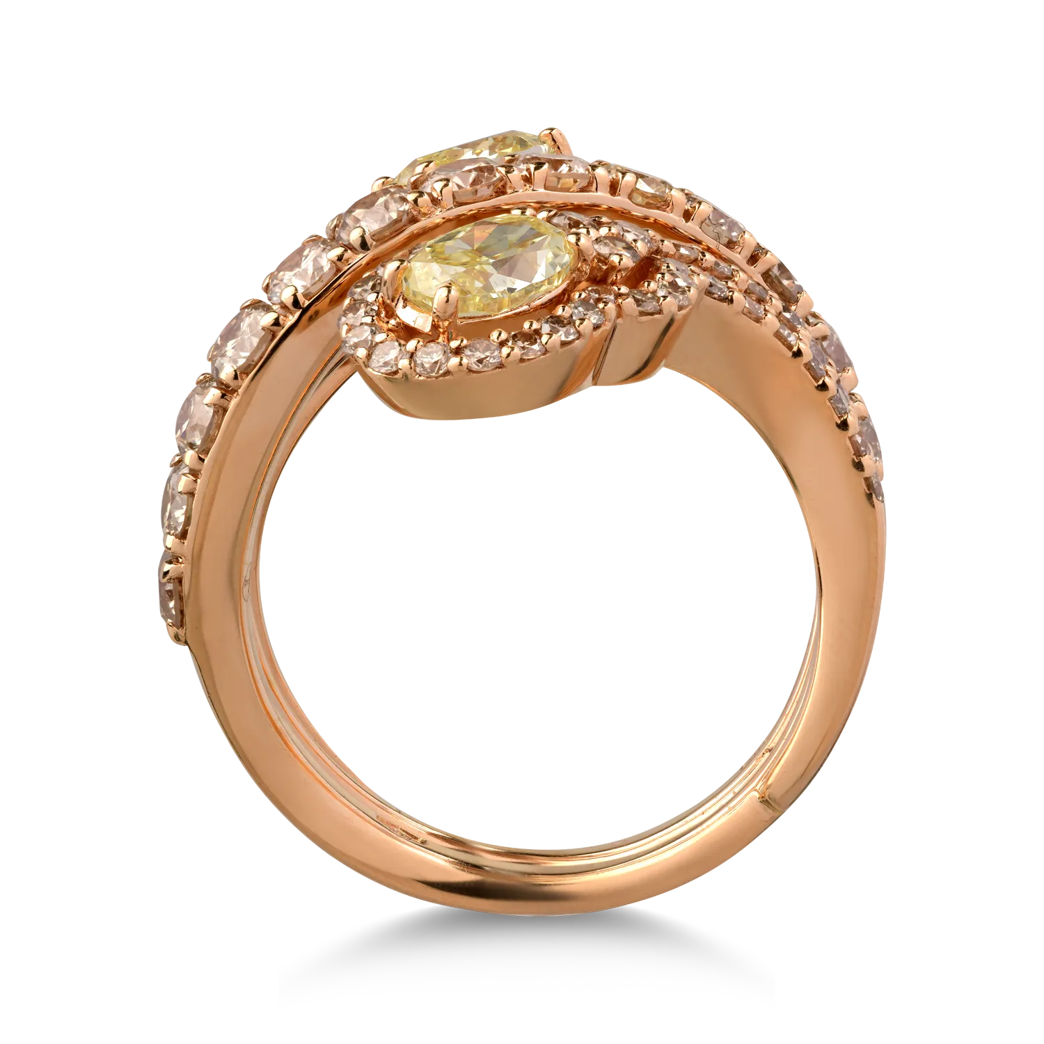 Inel din aur roz cu diamante galbene ovale de 1.3ct si diamante maro de 1.8ct
