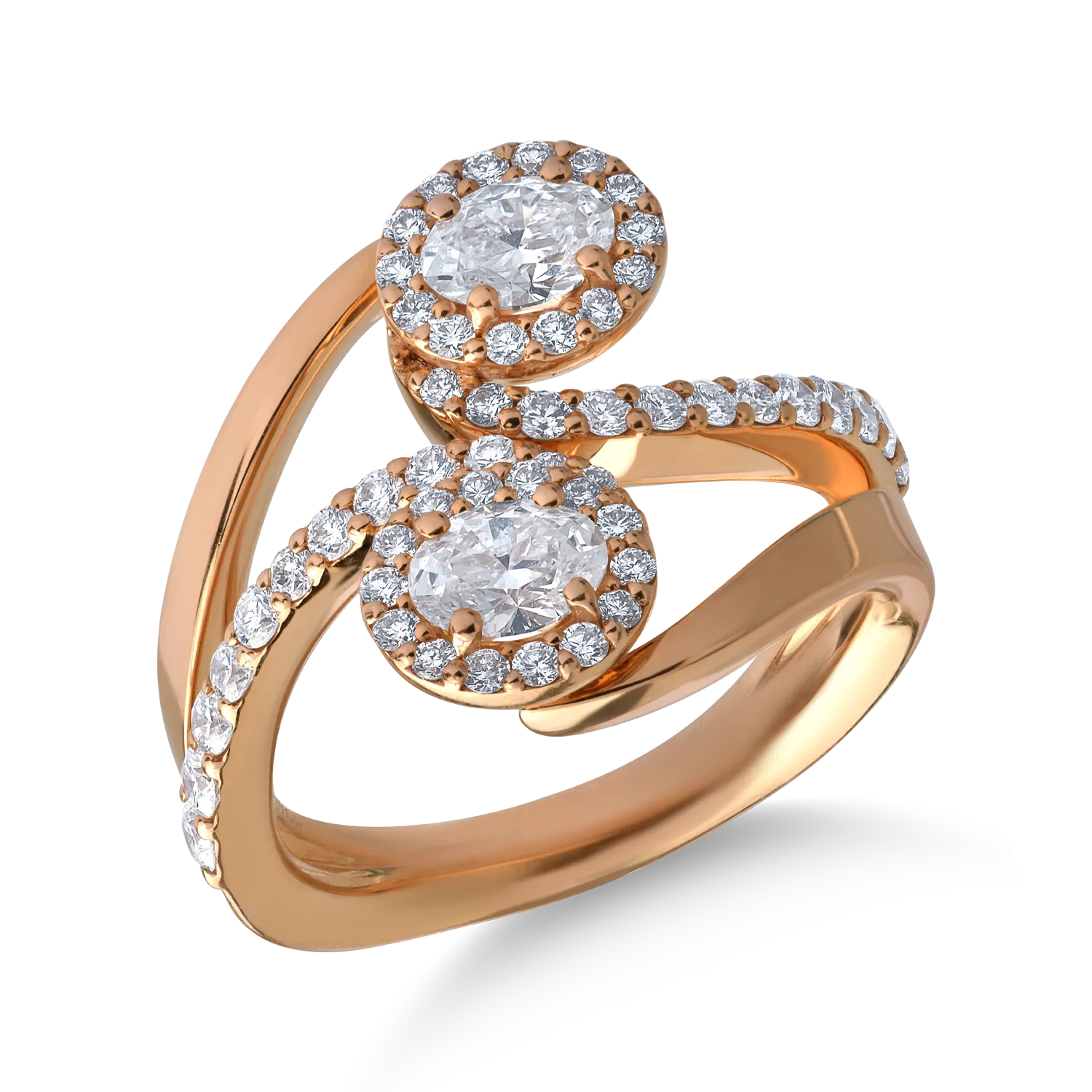 Inel din aur roz cu diamante ovale si rotunde de 1.3ct