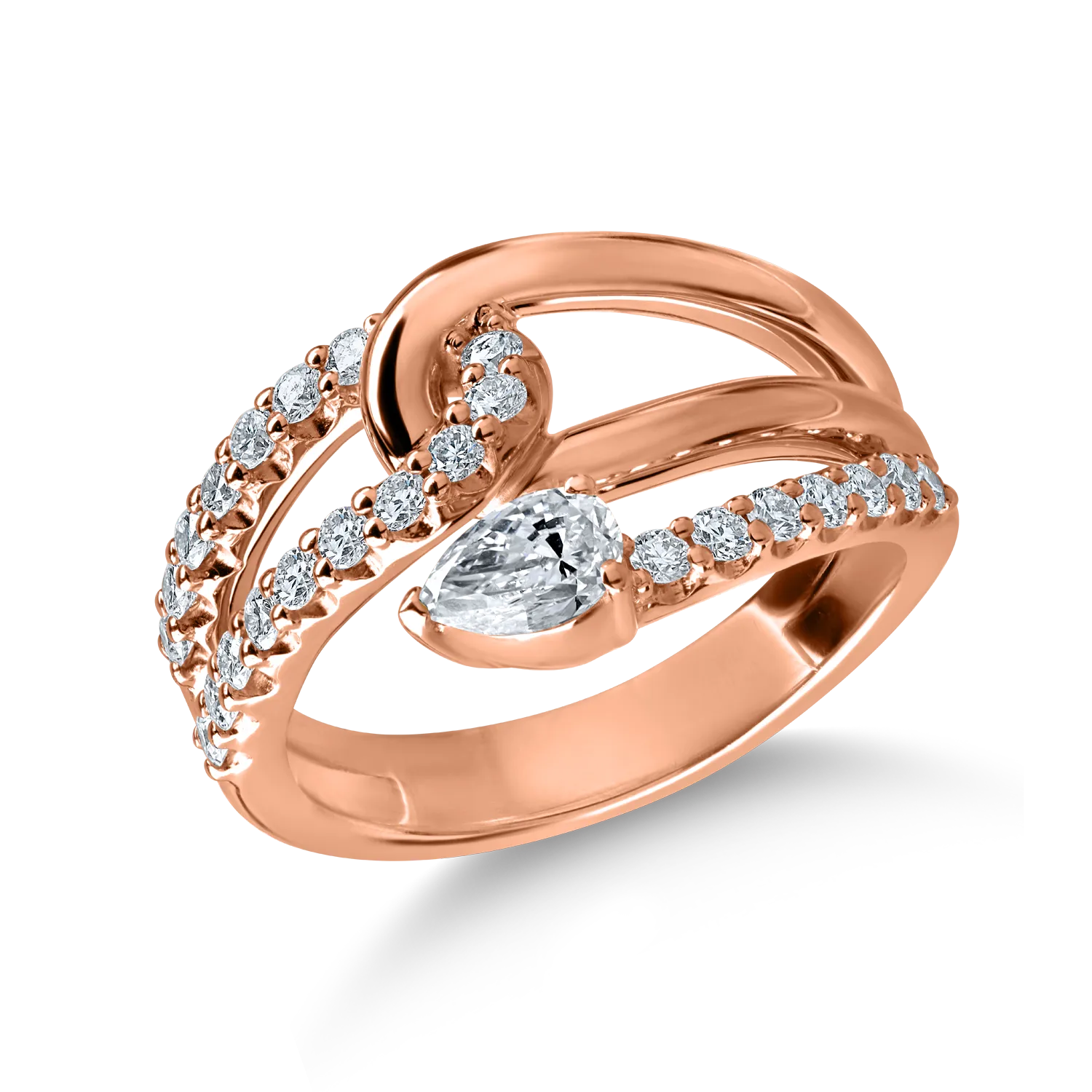 Inel din aur roz cu diamante pear si rotunde de 0.7ct
