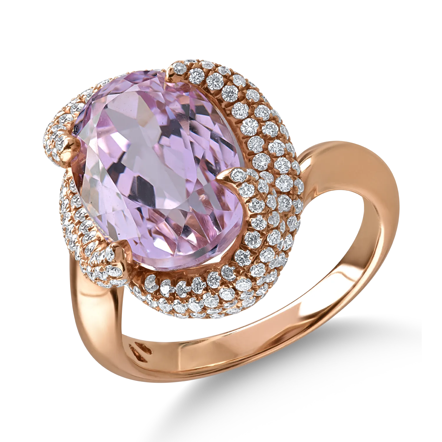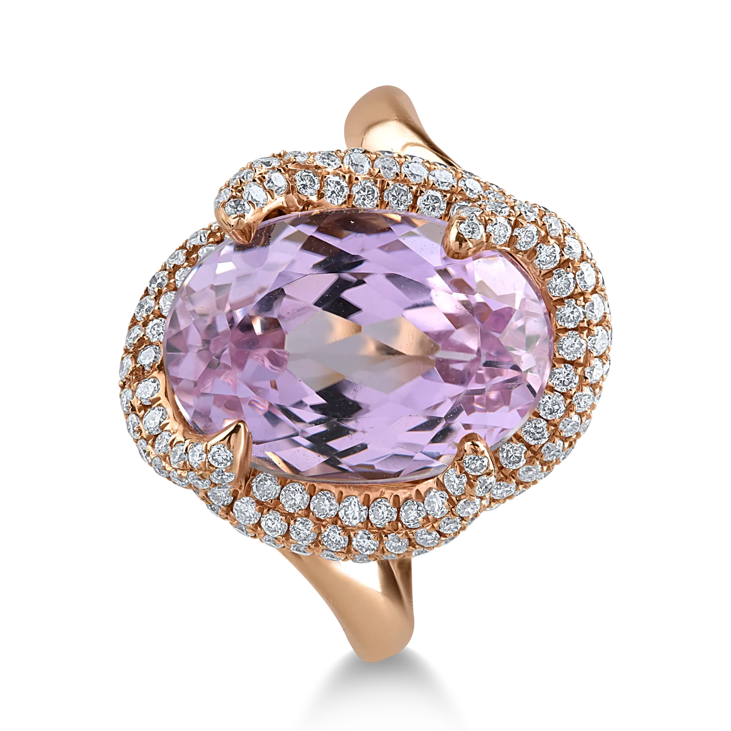 Inel din aur roz cu kunzit oval de 8.8ct si diamante de 1.07ct