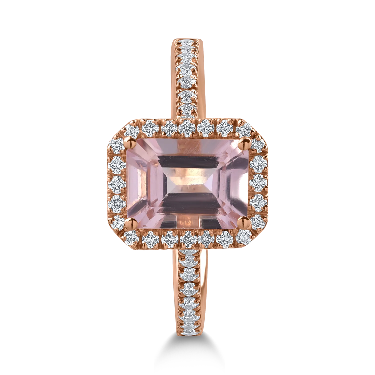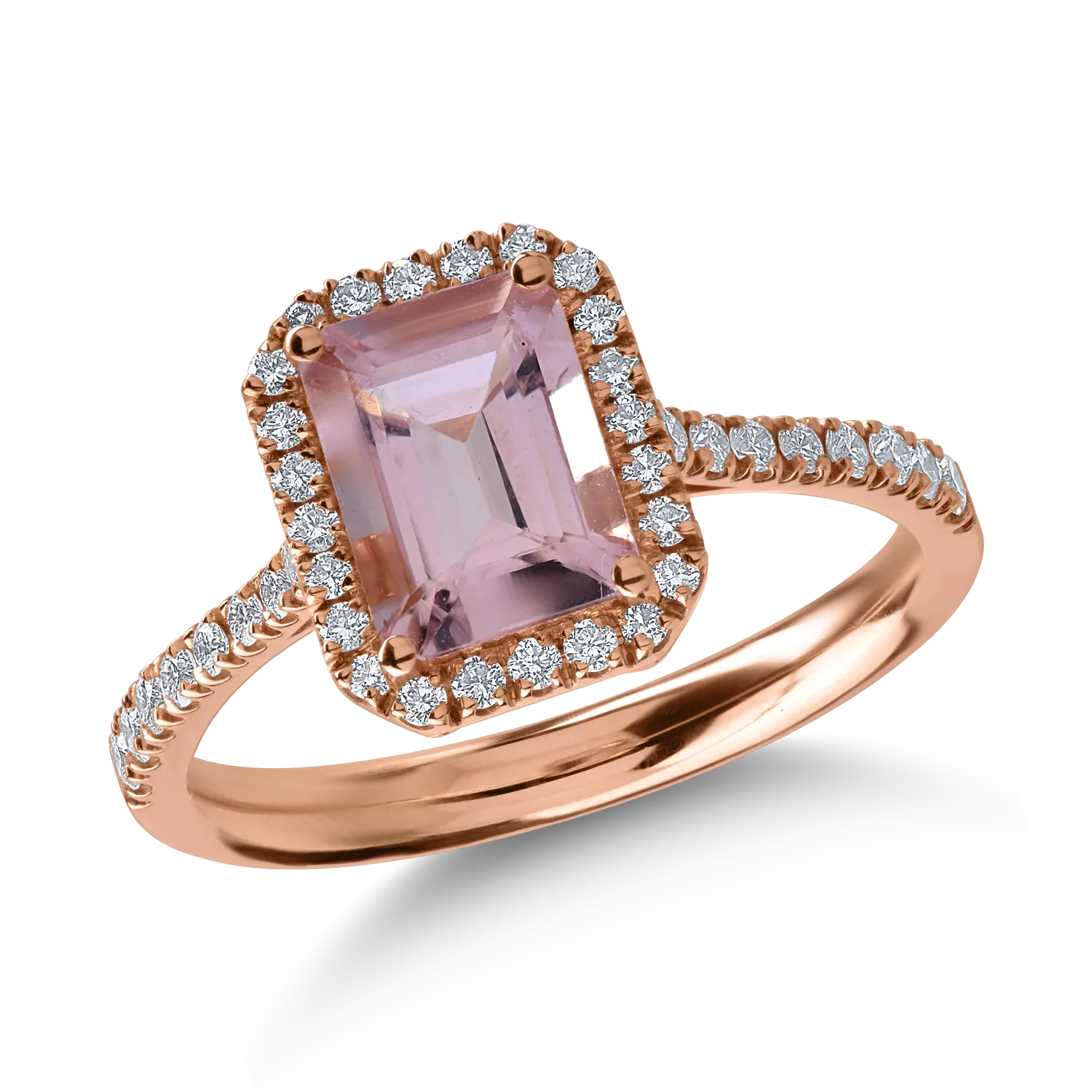Inel din aur roz cu morganit octogonal de 1.2ct si diamante de 0.3ct