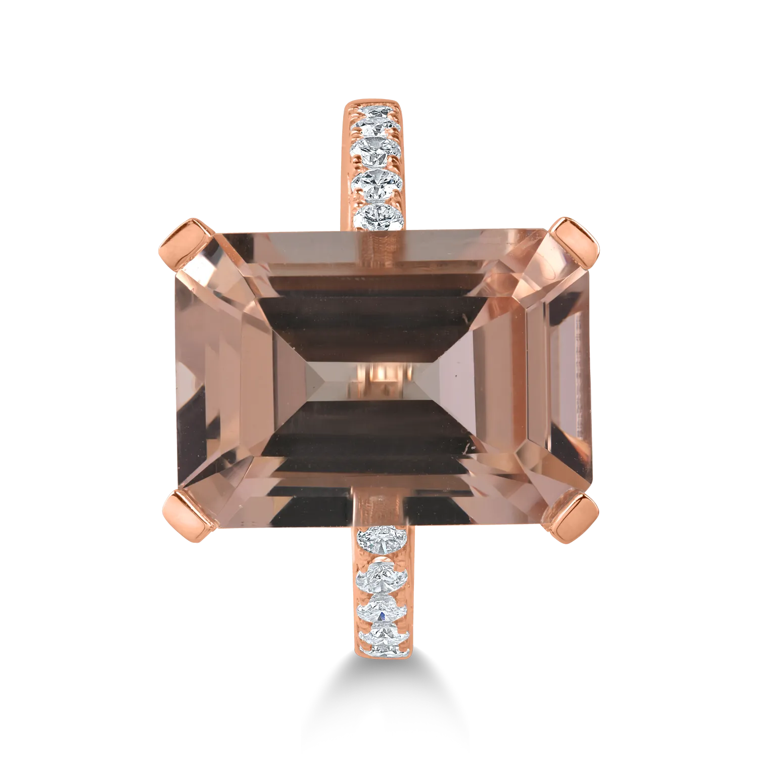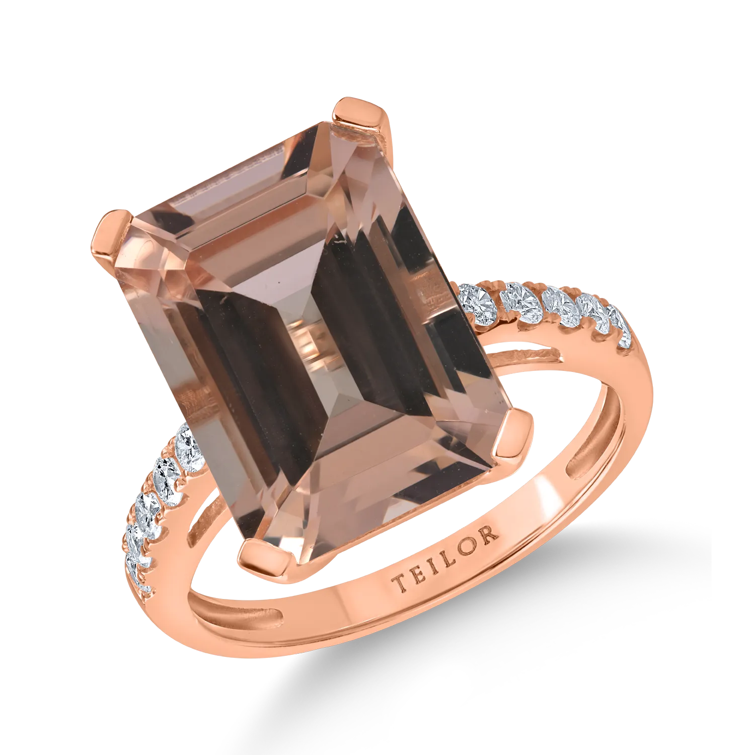Inel din aur roz cu morganit octogonal de 6.7ct si diamante de 0.2ct