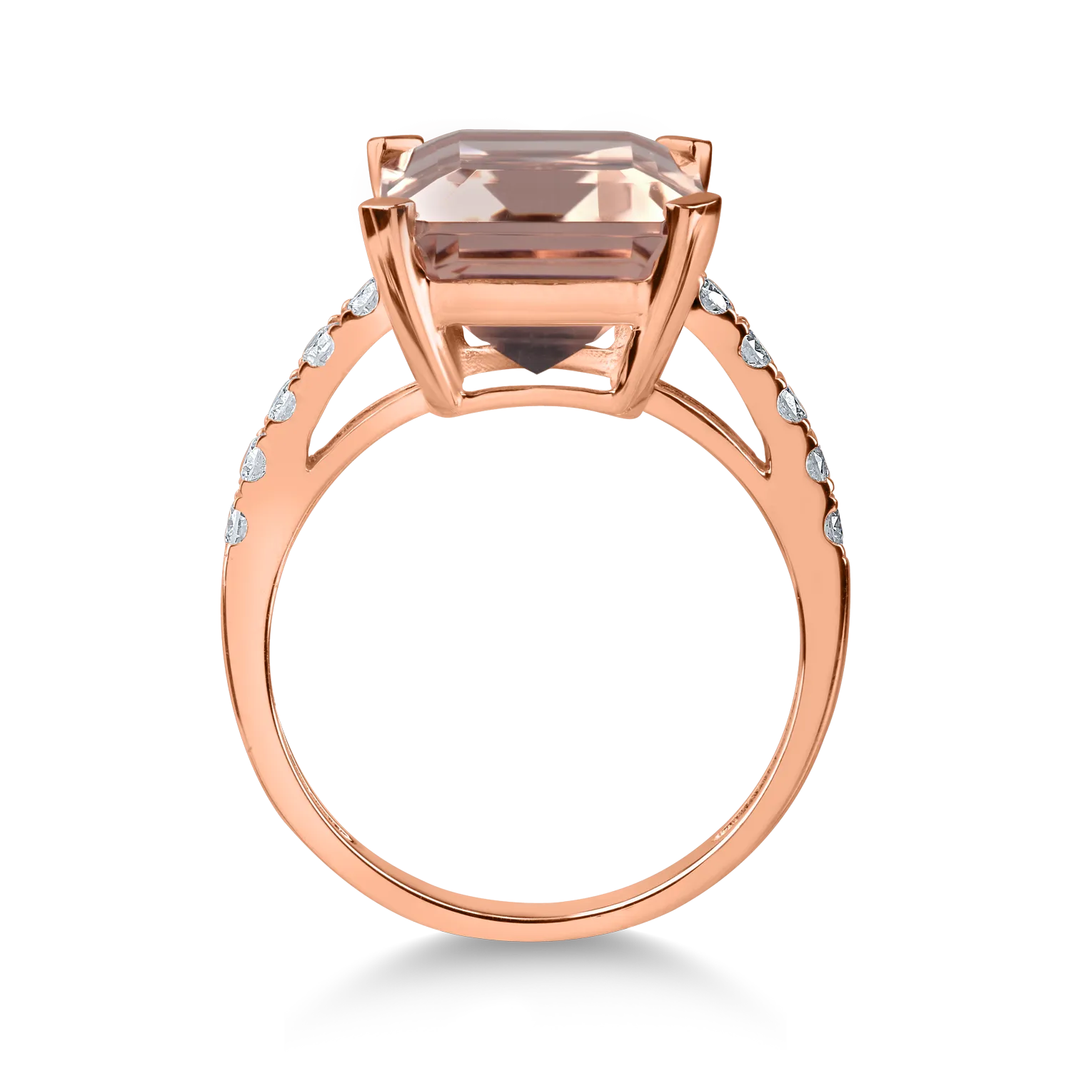 Inel din aur roz cu morganit octogonal de 7ct si diamante de 0.2ct