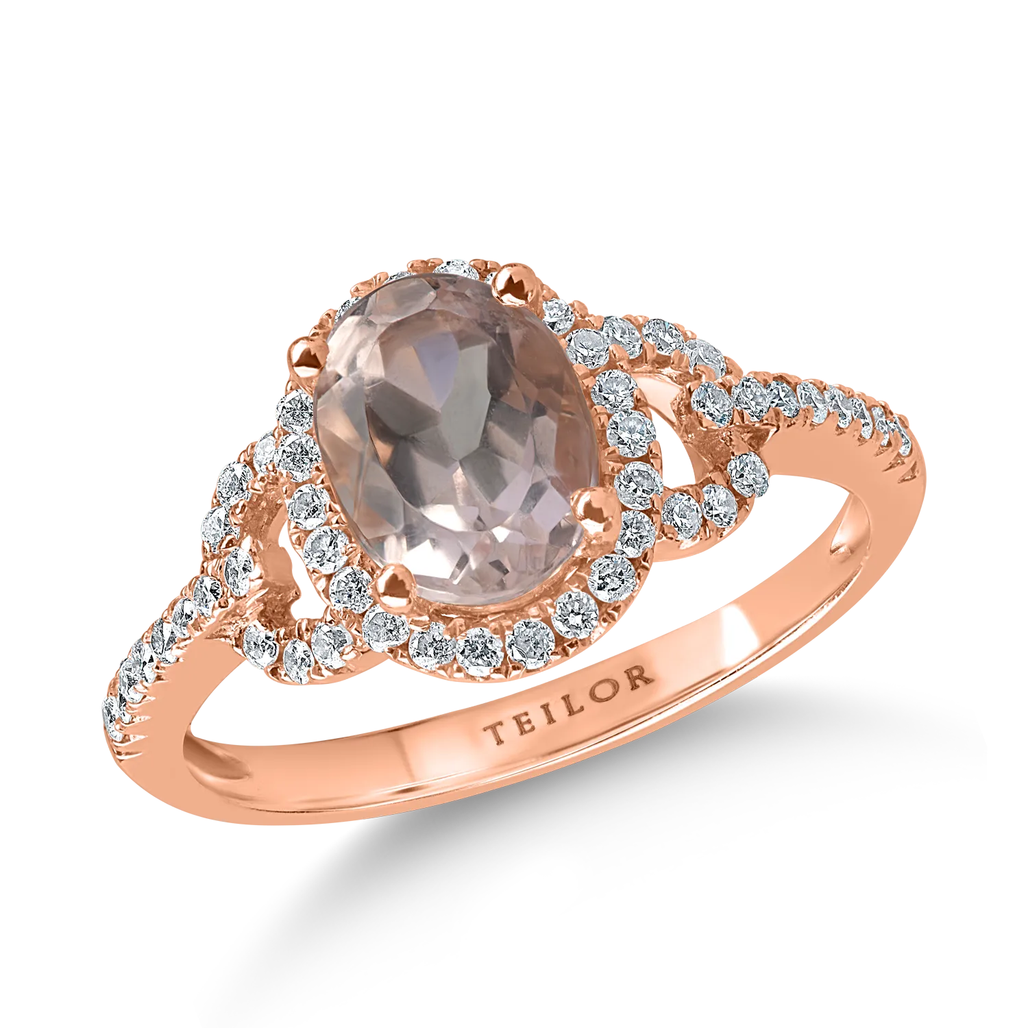 Inel din aur roz cu morganit oval de 1ct si diamane de 0.2ct