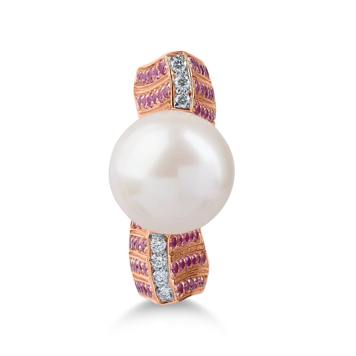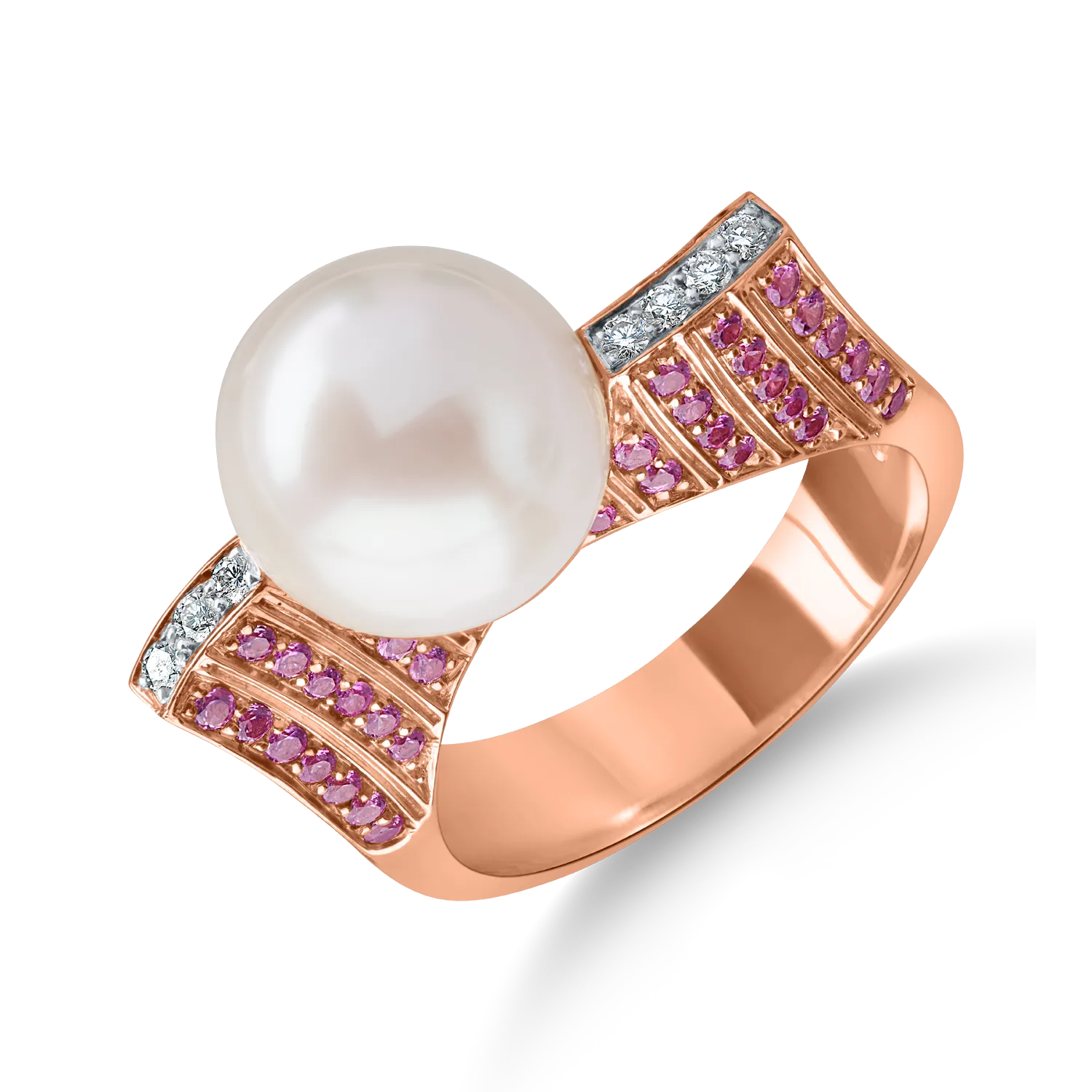 Inel din aur roz cu perla de cultura si pietre pretioase de 0.7ct
