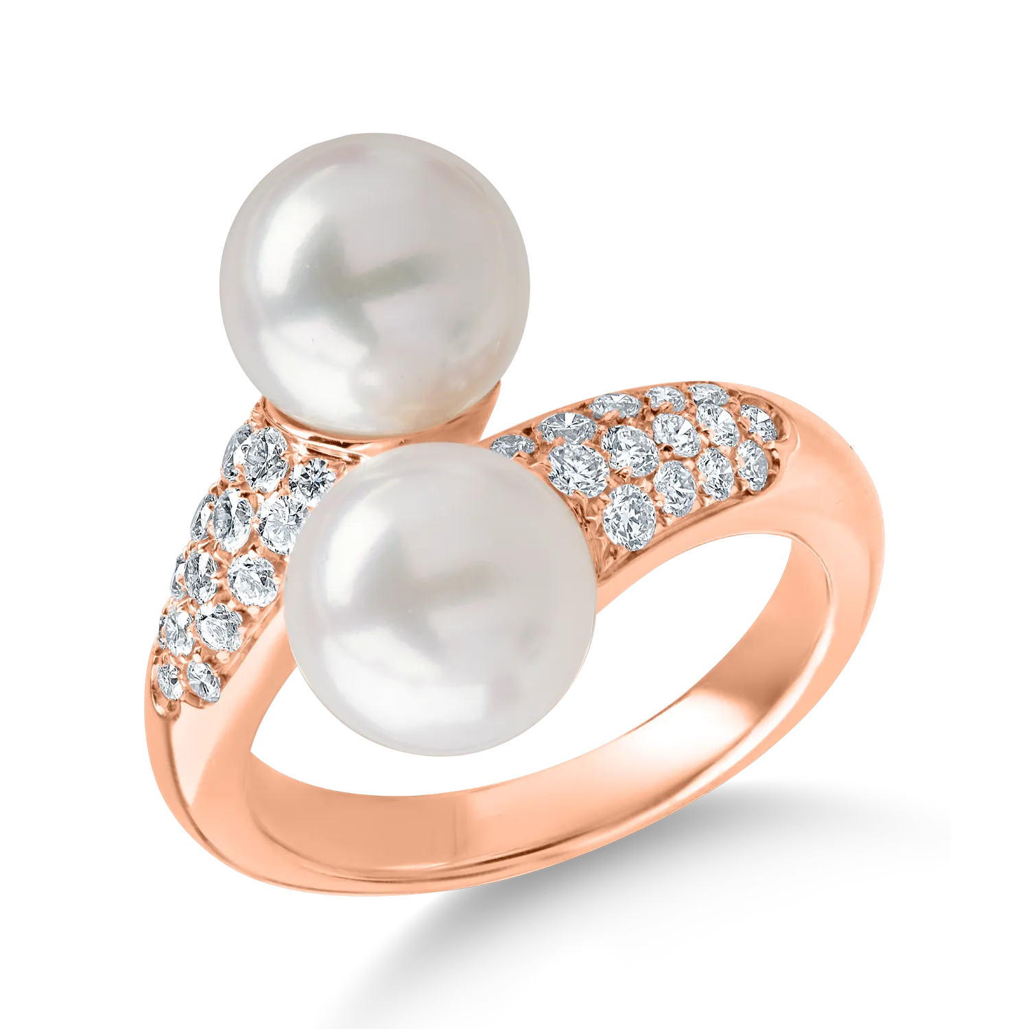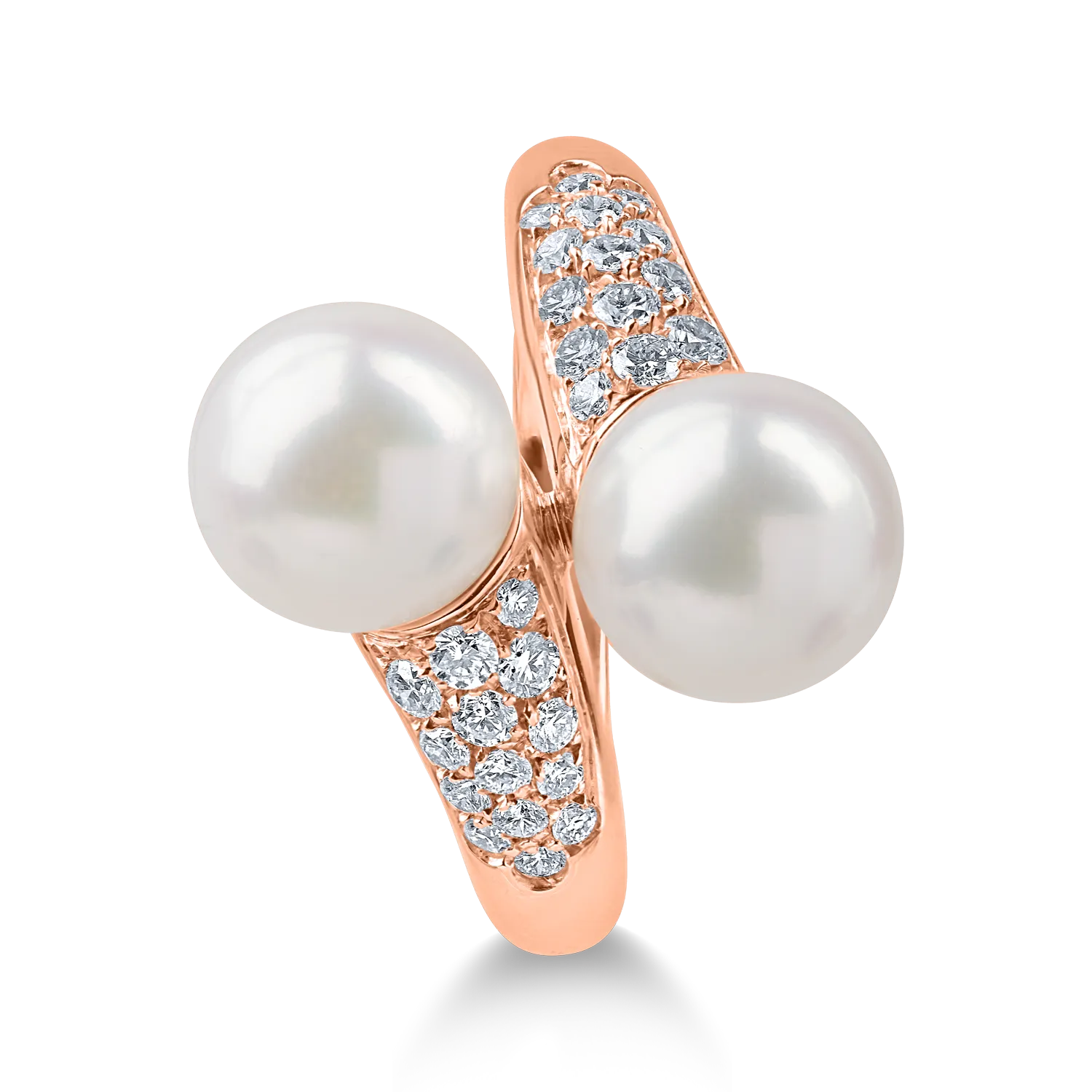 Inel din aur roz cu perle de apa dulce de 8.5ct si diamante de 0.45ct