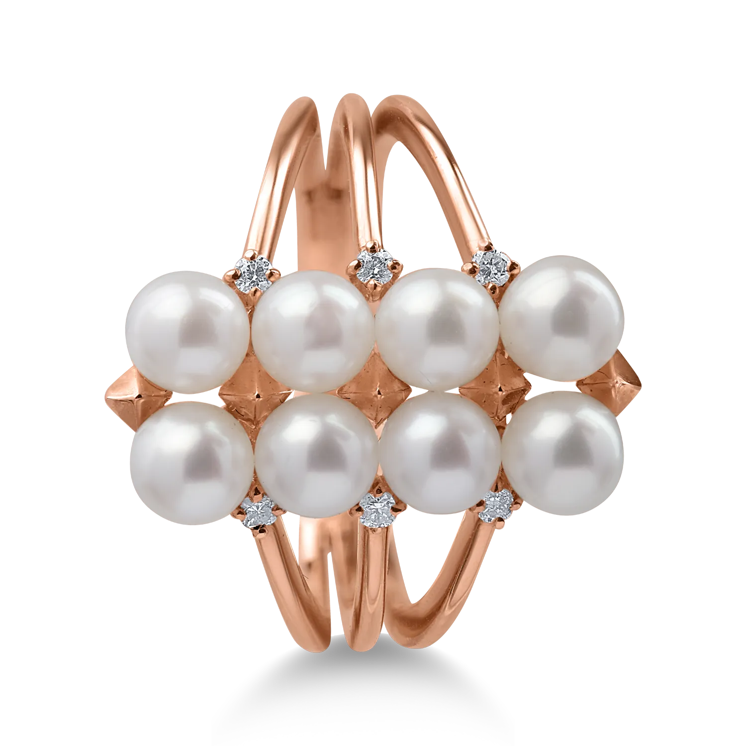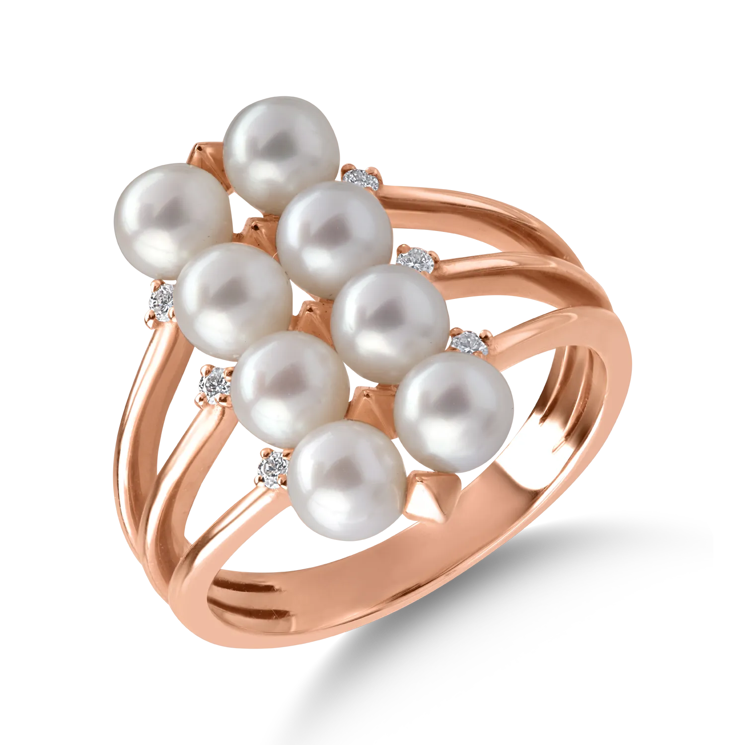 Inel din aur roz cu perle de cultura de 4.16ct si diamante de 0.07ct