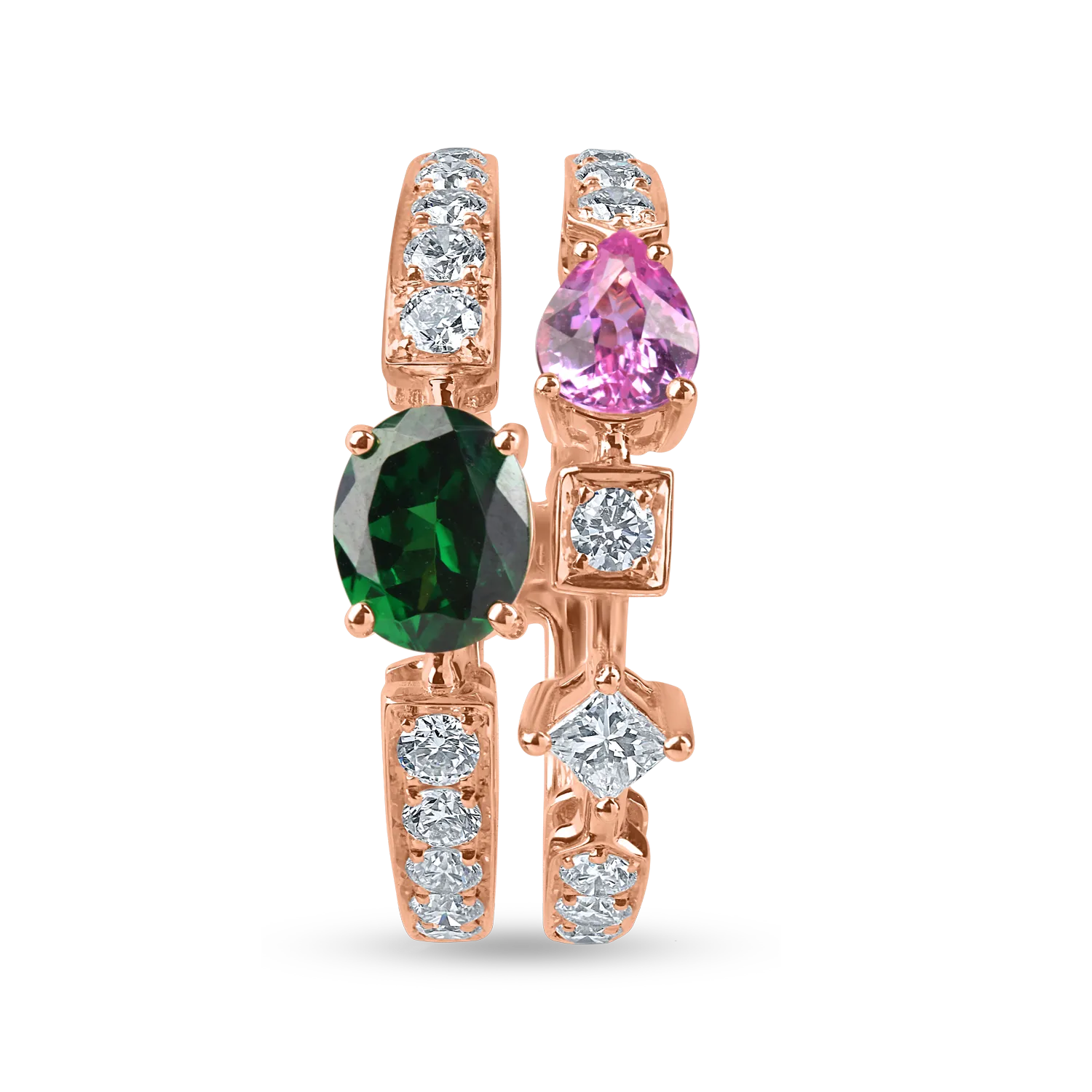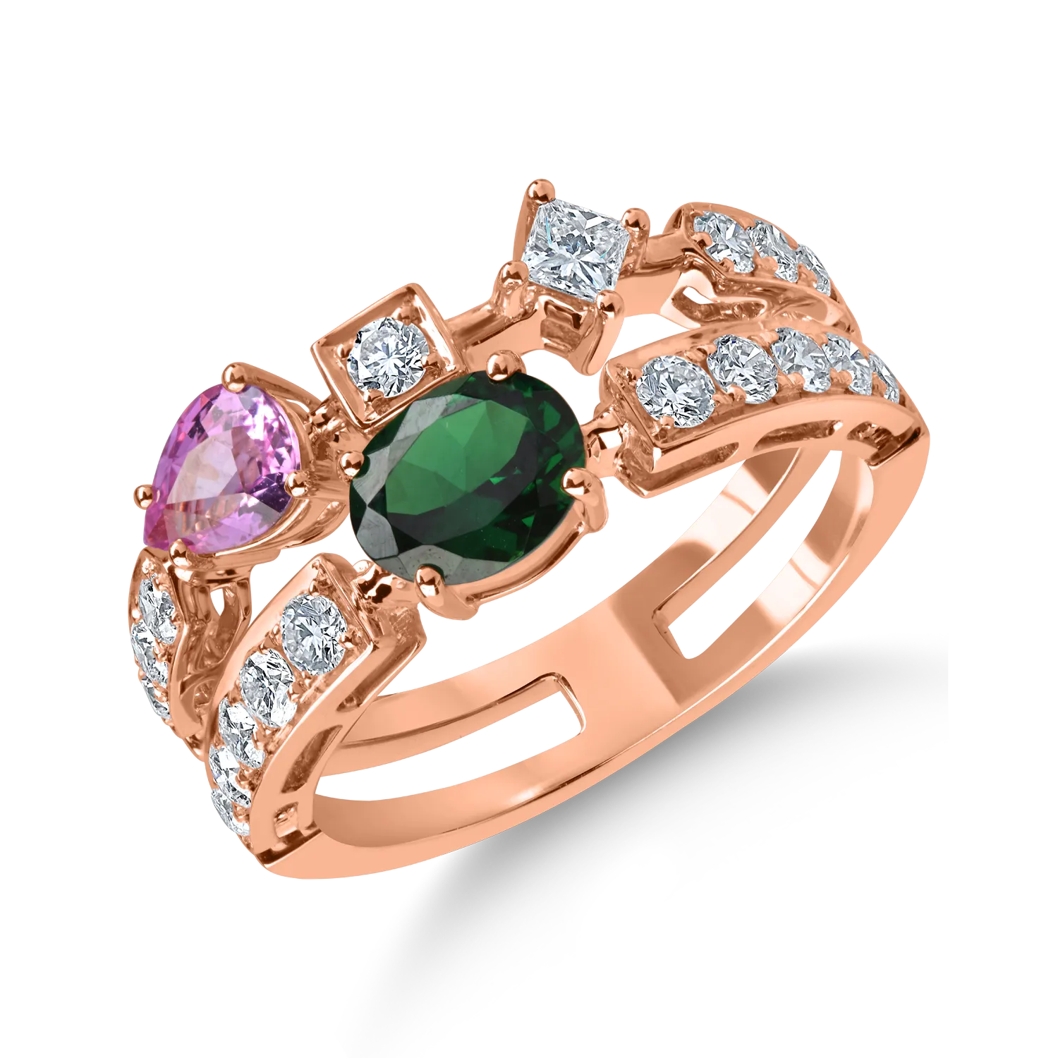 Inel din aur roz cu pietre pretioase si semipretioase de 1.6ct