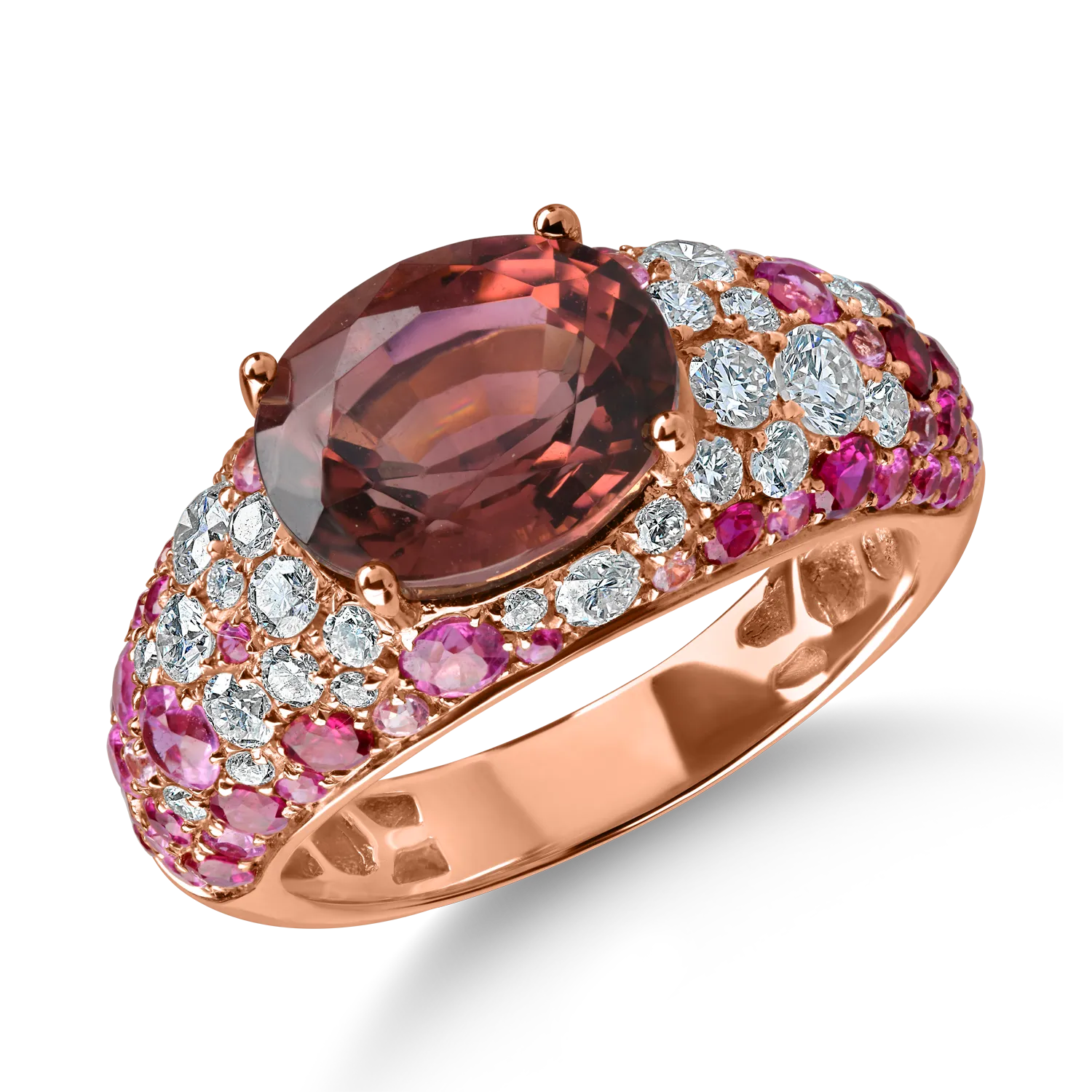 Inel din aur roz cu pietre pretioase si semipretioase de 5.2ct