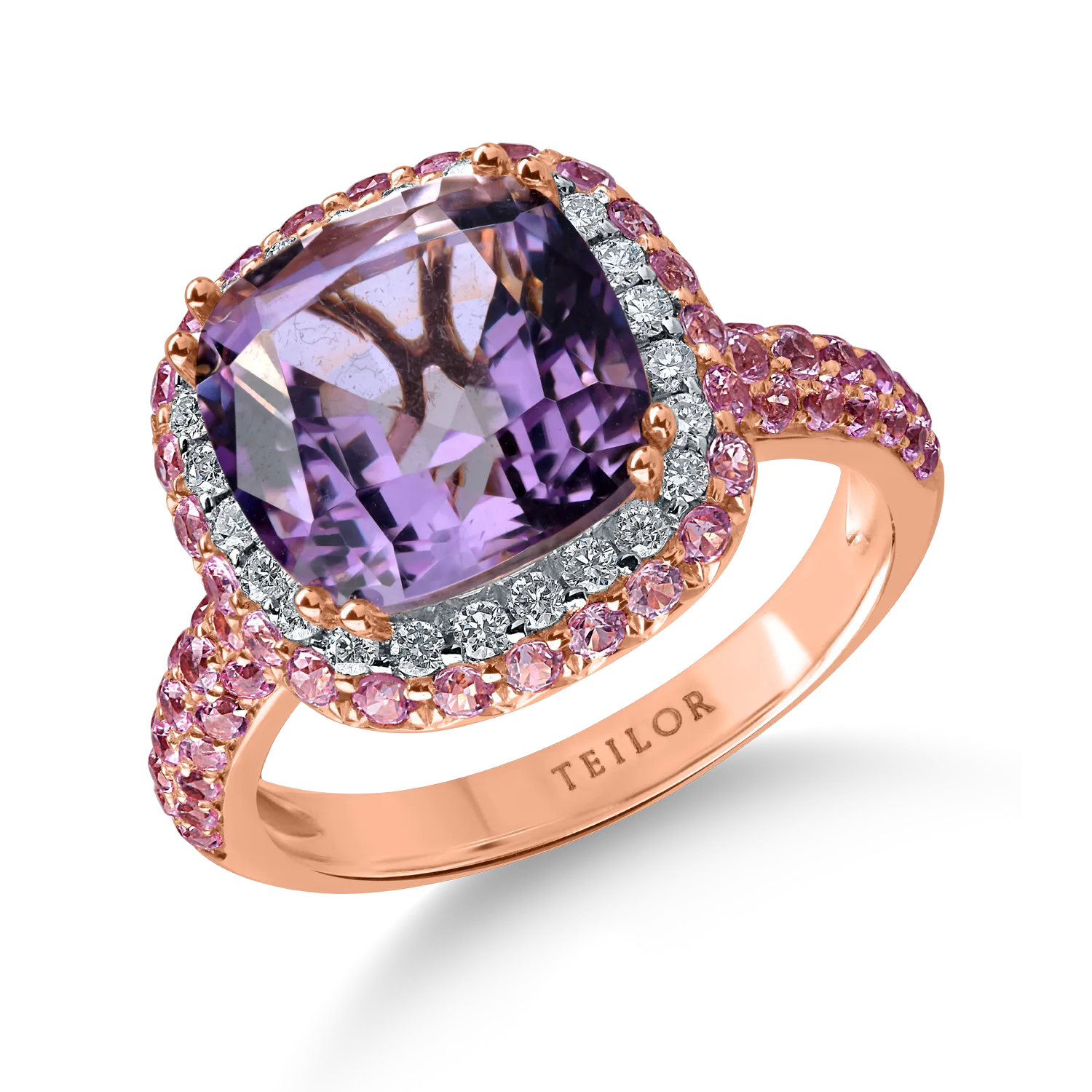 Inel din aur roz cu pietre pretioase si semipretioase de 5.9ct