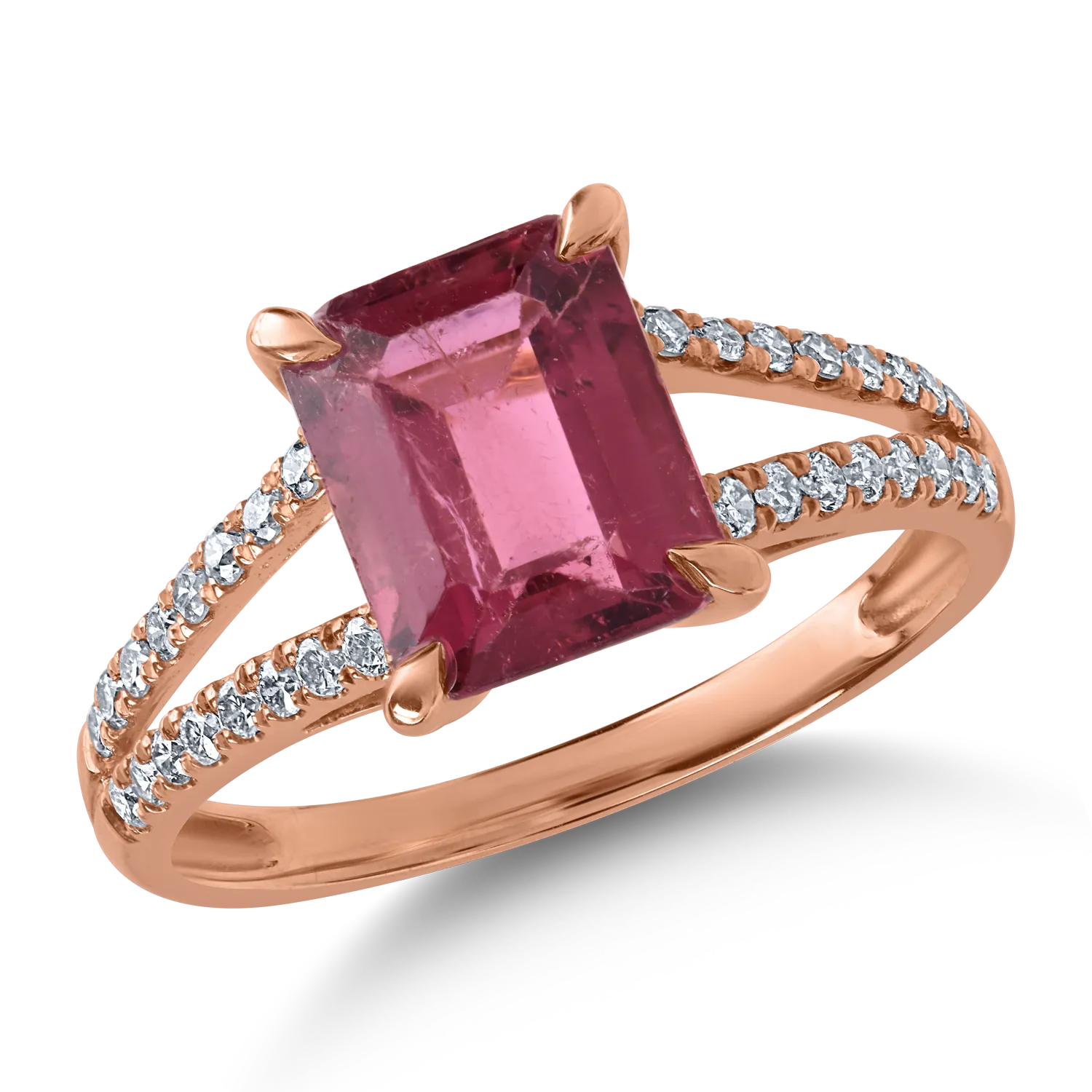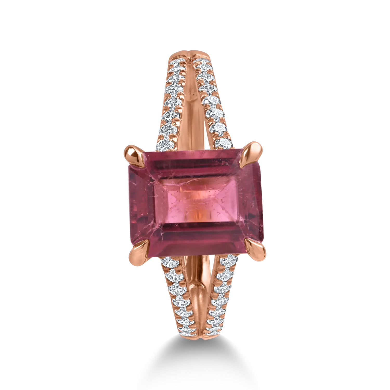 Inel din aur roz cu rubelit rectangulare de 2.2ct si diamante de 0.2ct