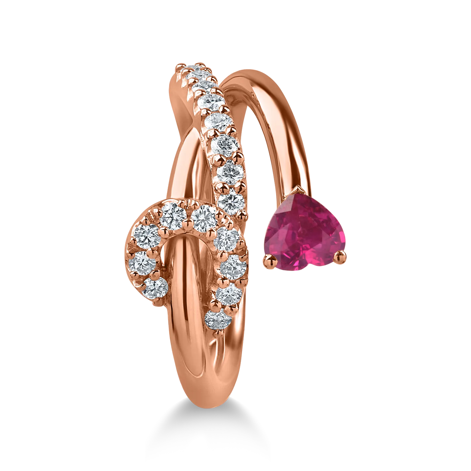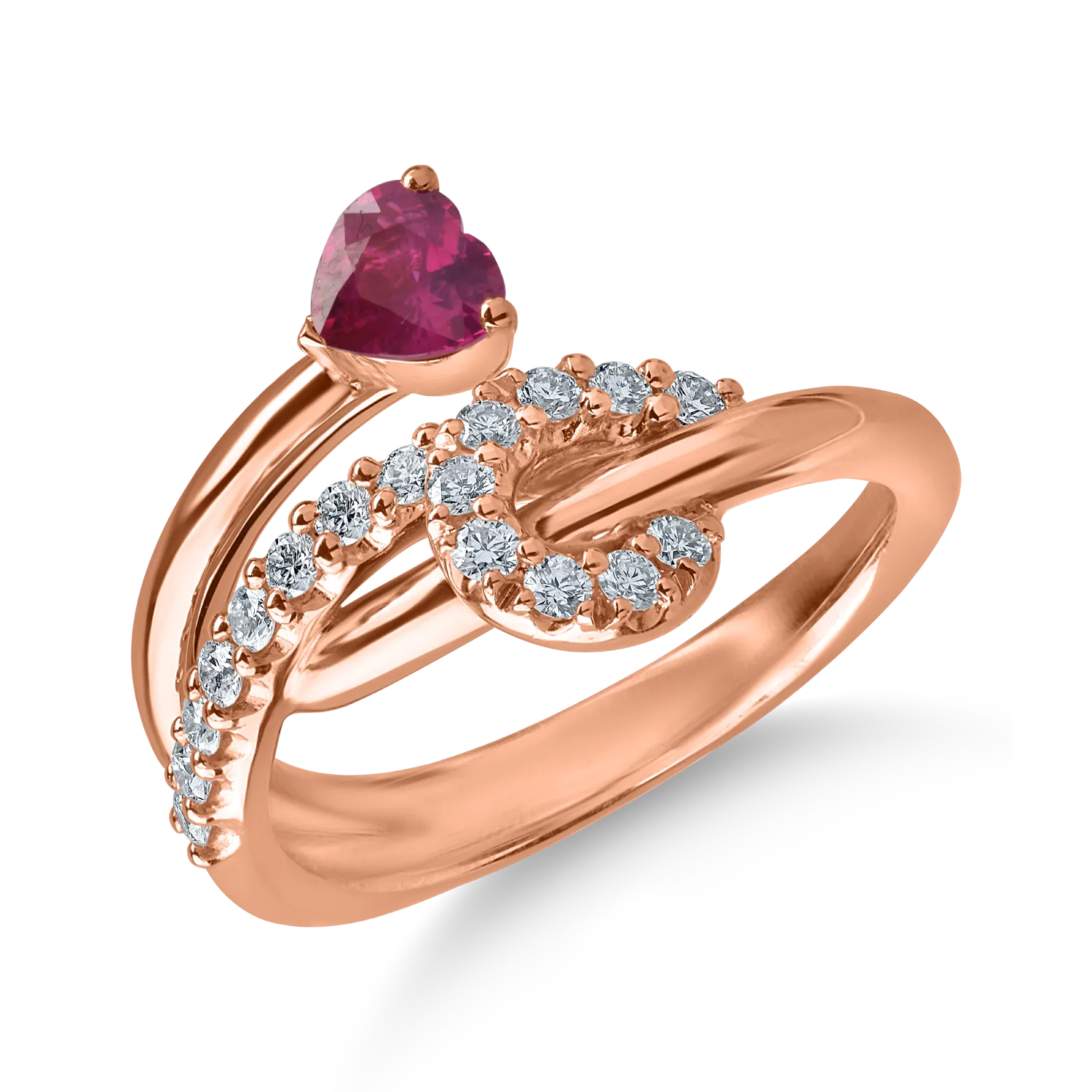 Inel din aur roz cu rubin heart de 0.43ct si diamante de 0.3ct