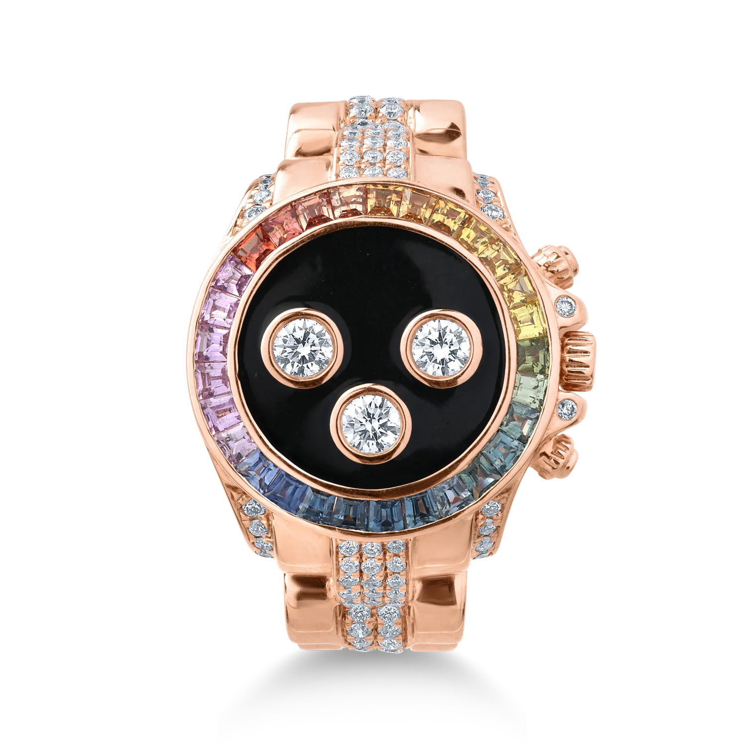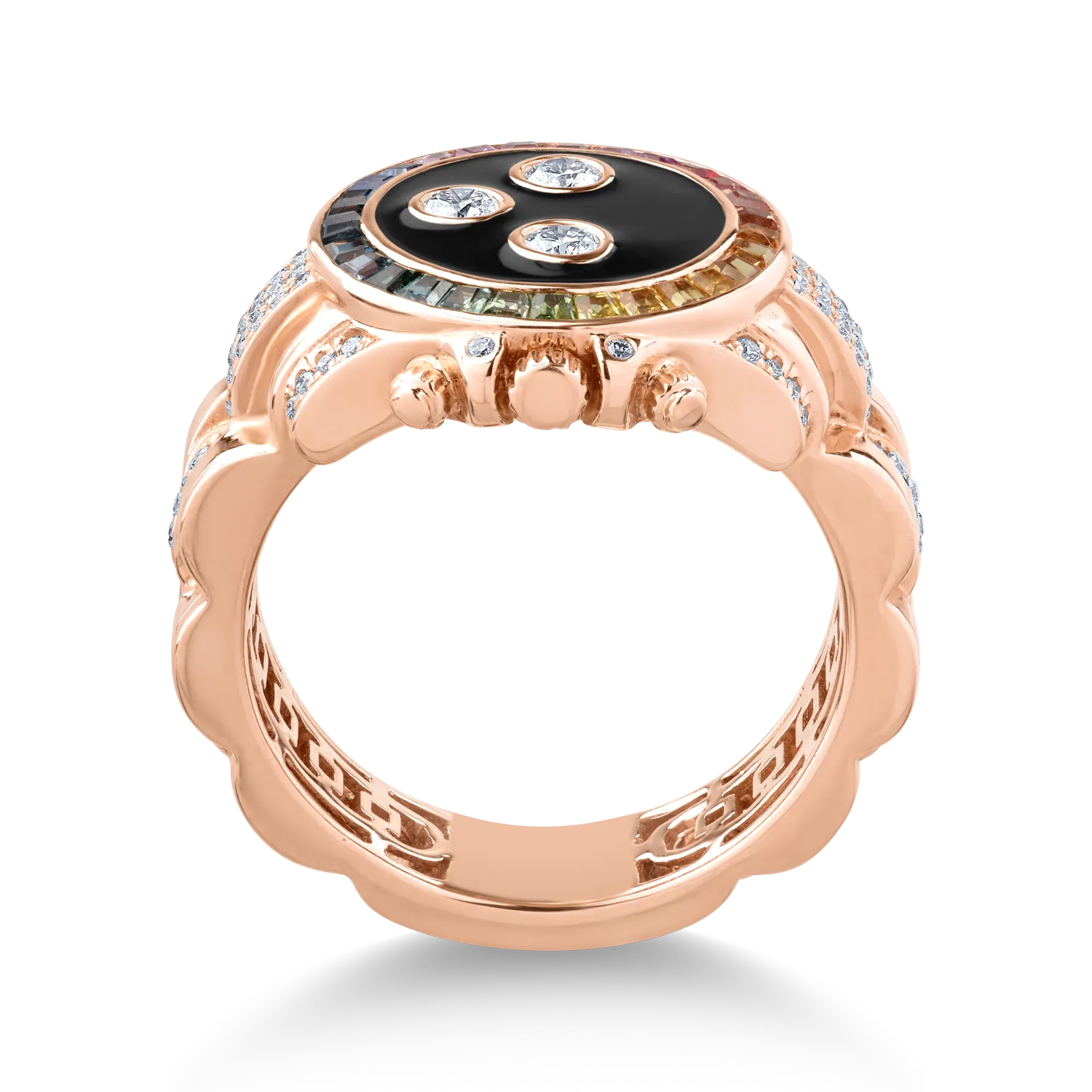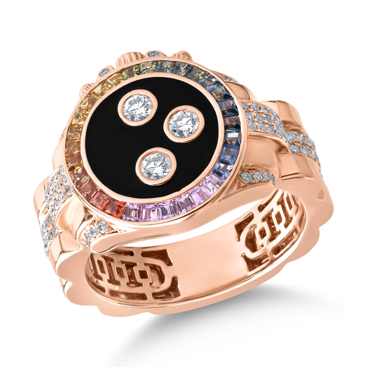 Inel din aur roz cu safire multicolore de 0.69ct si diamante de 0.6ct