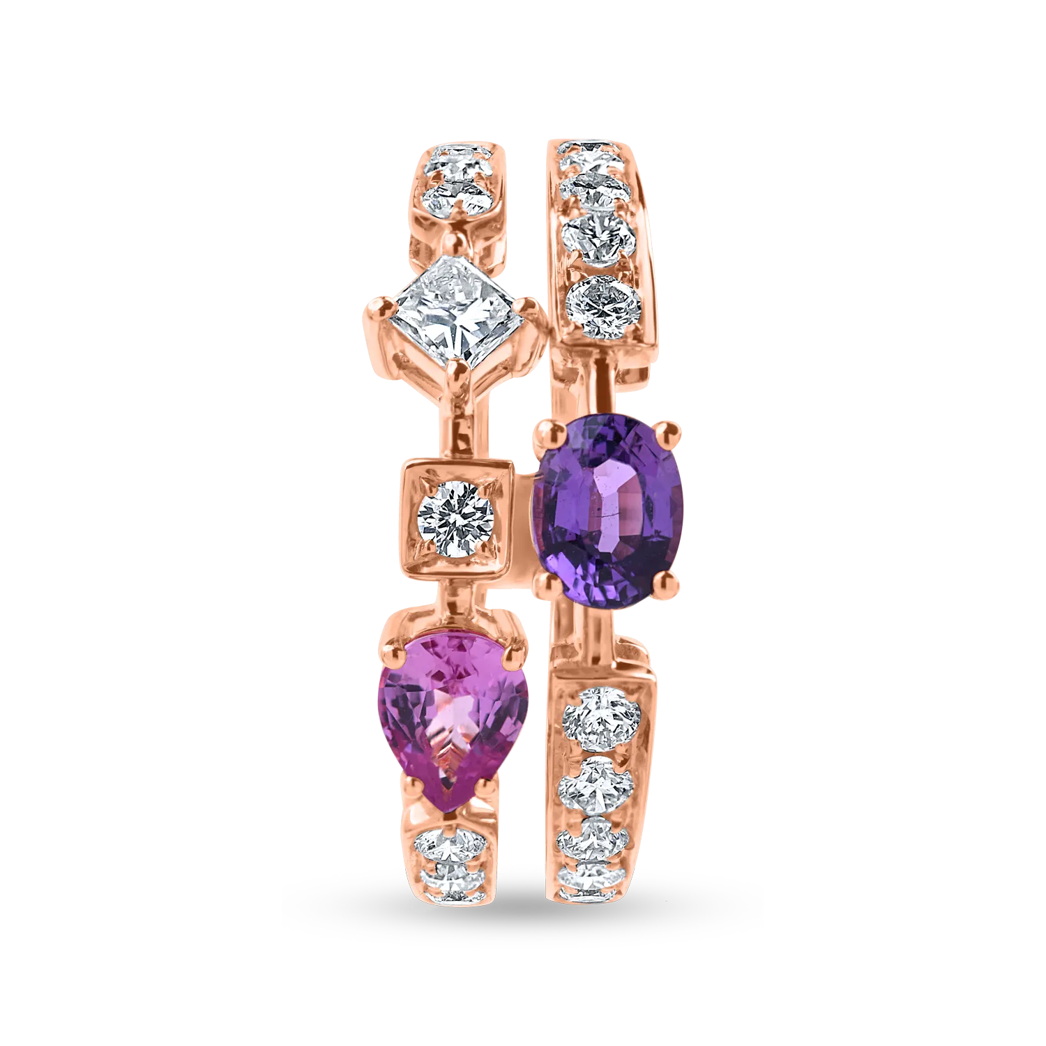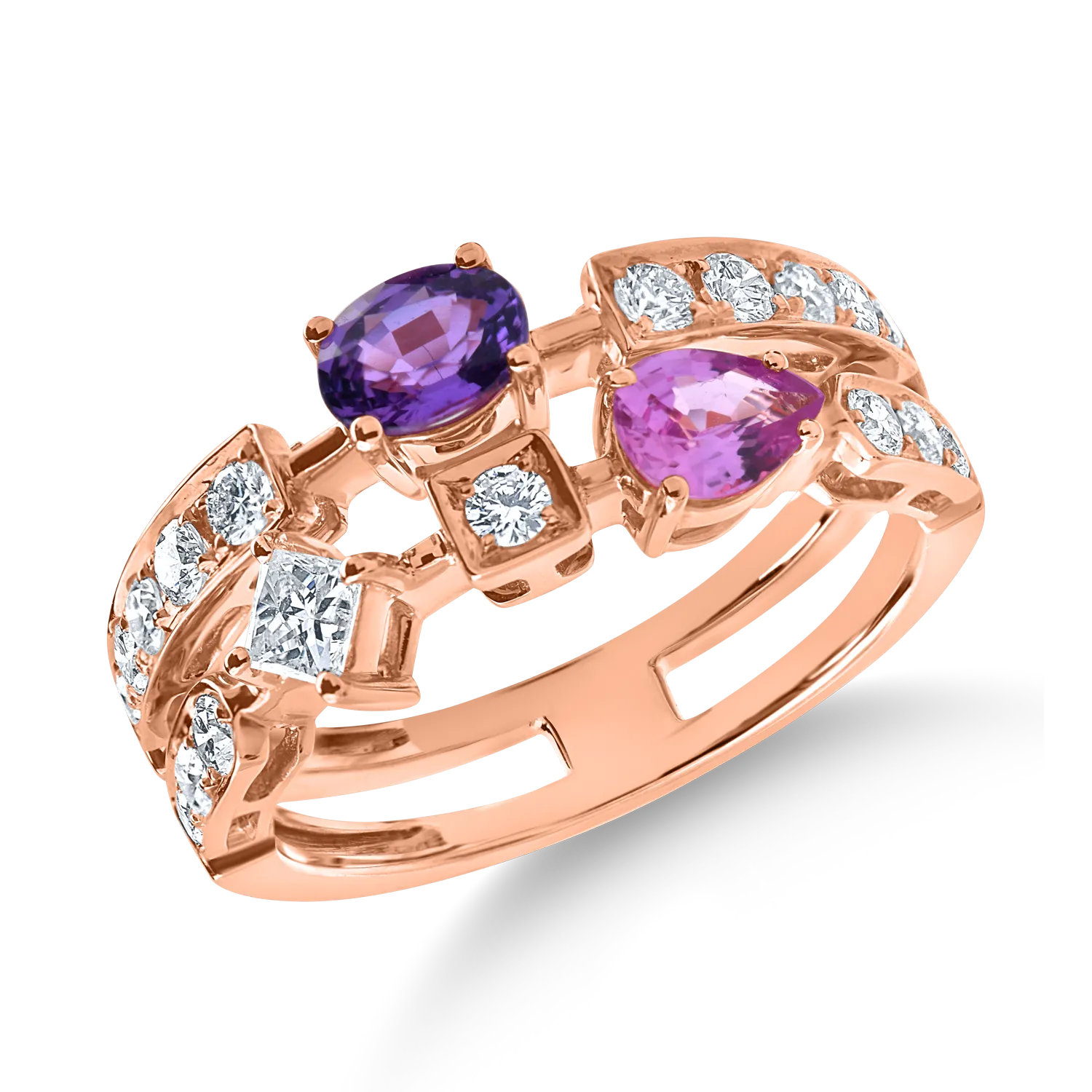 Inel din aur roz cu safire pear si ovale si diamante princess si rotunde de 1.4ct