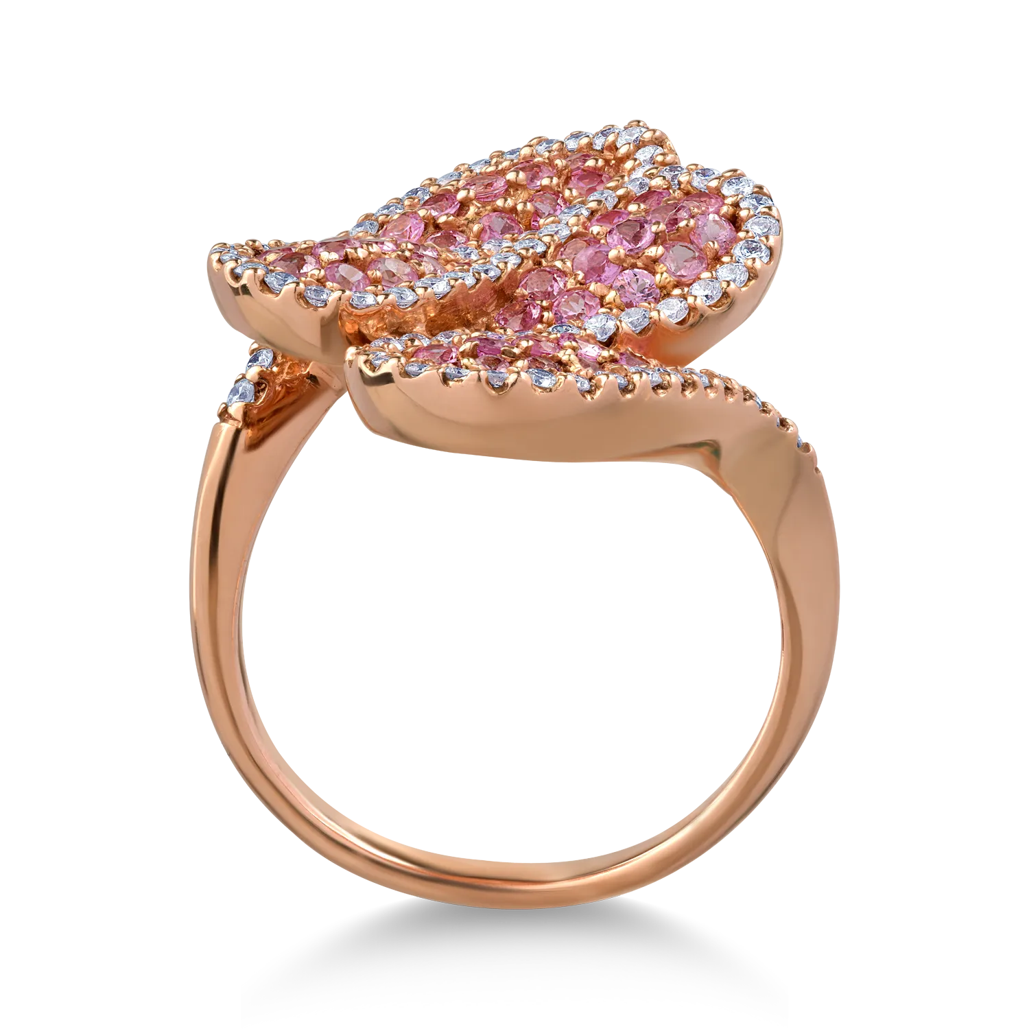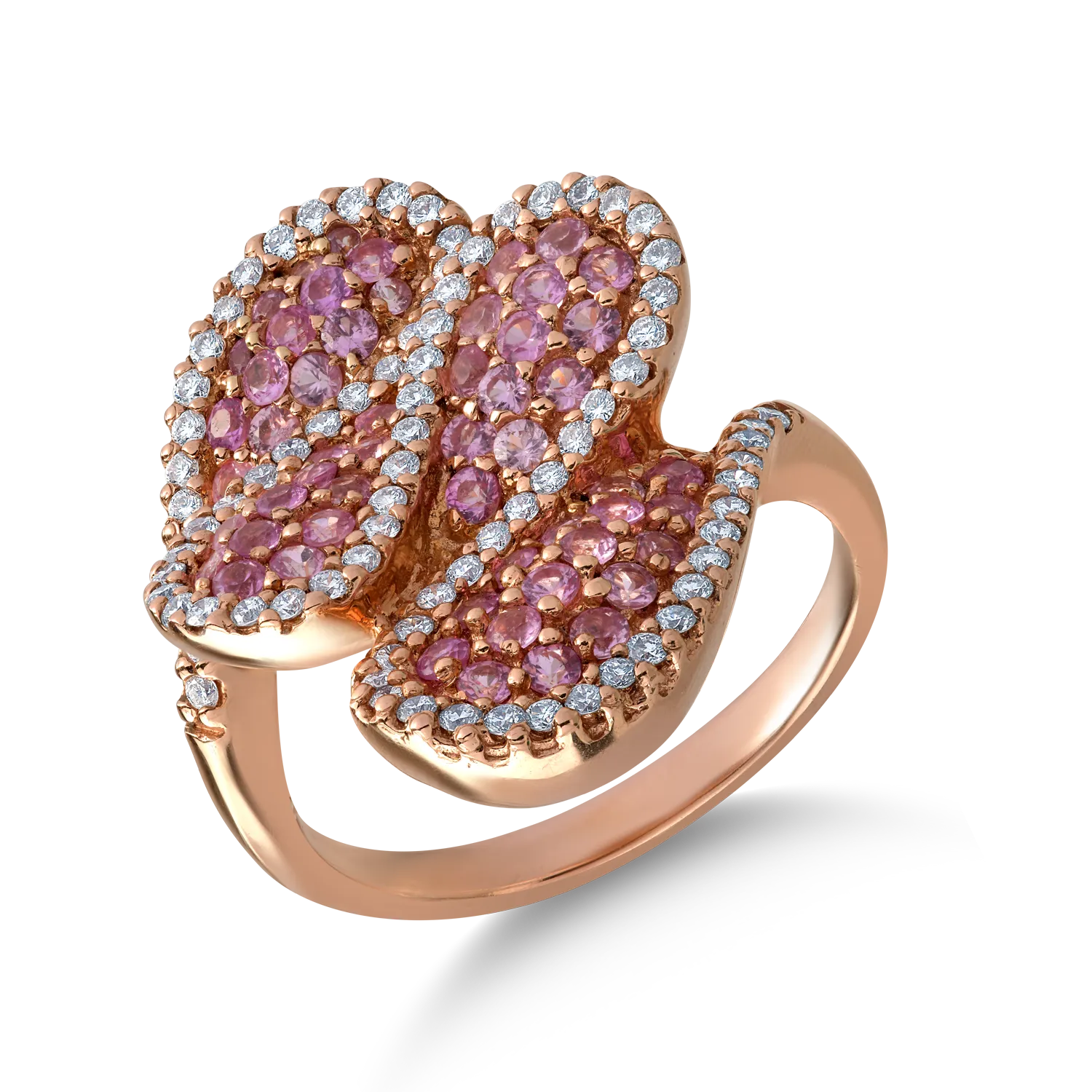 Inel din aur roz cu safire roz de 1.195ct si diamante de 0.557ct