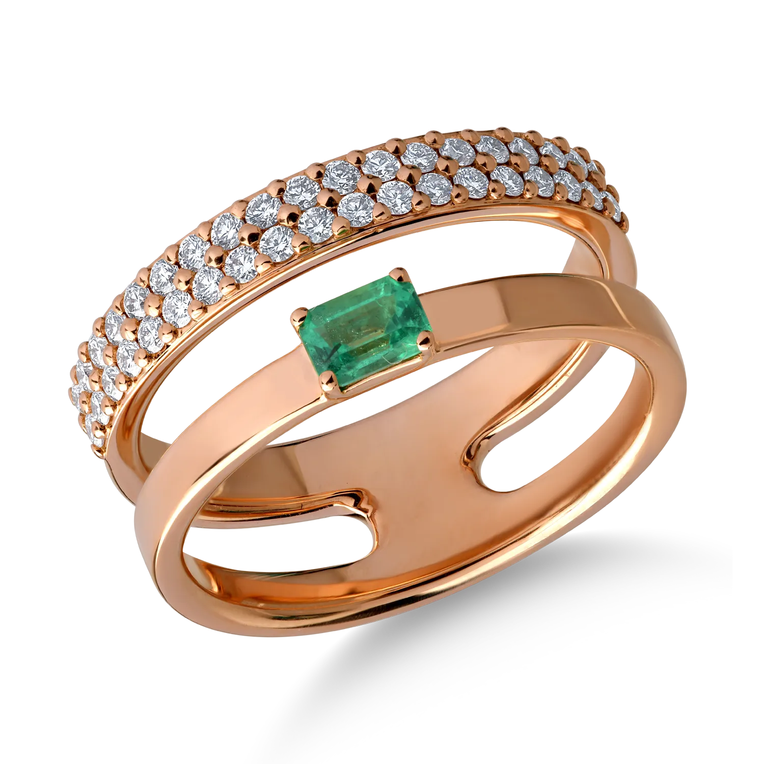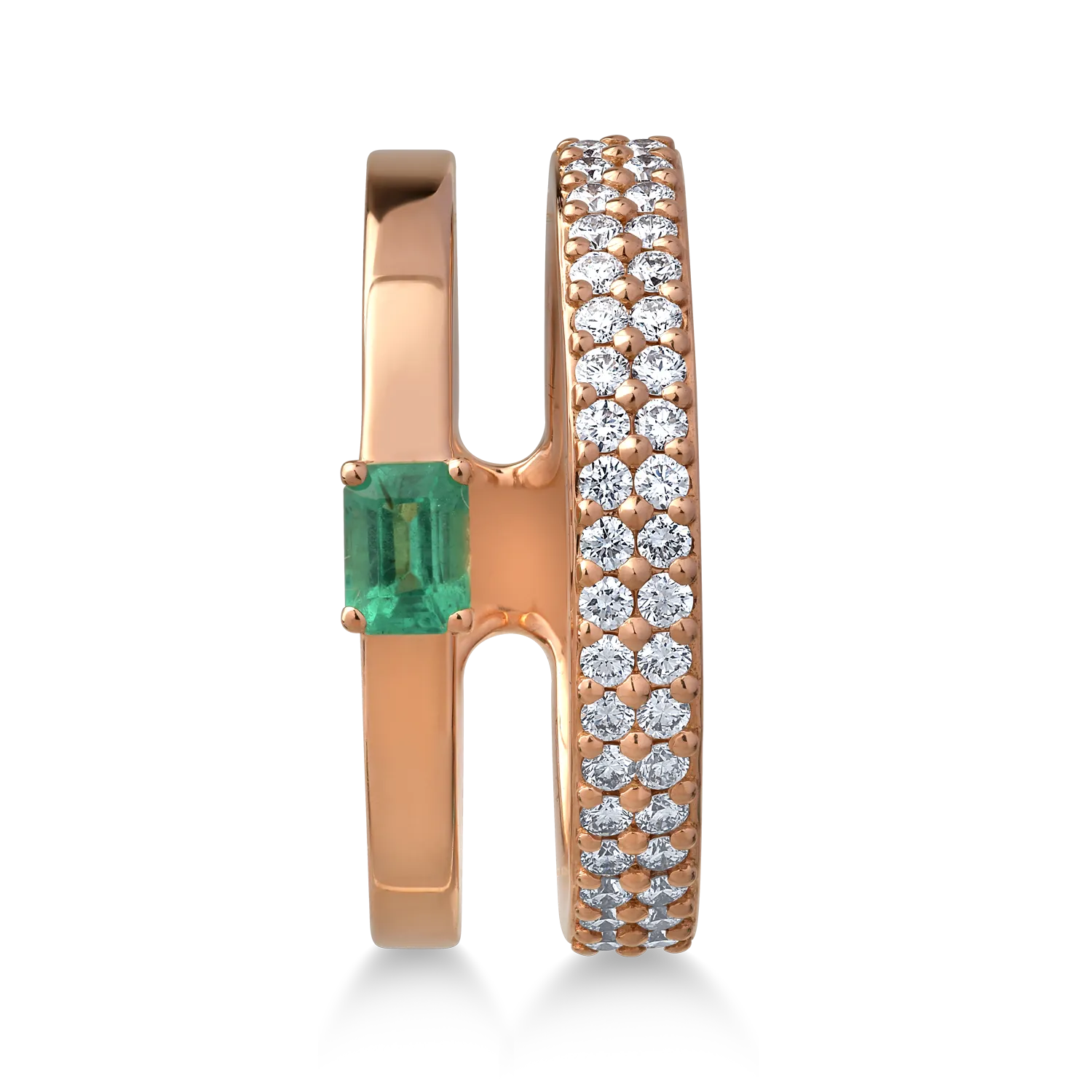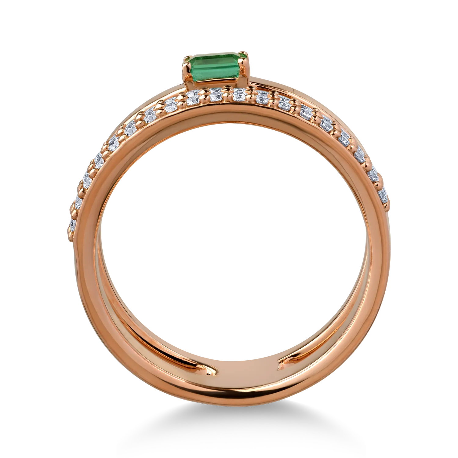 Inel din aur roz cu smarald baguette de 0.2ct si diamante de 0.3ct